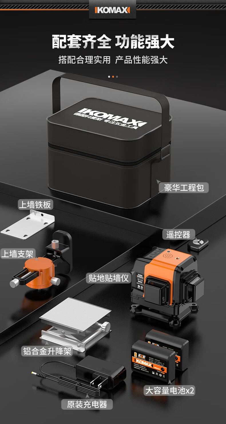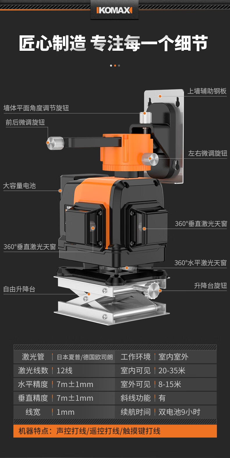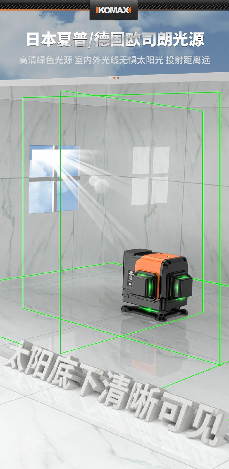 KOMAX green light 12-line level wall-to-floor high-precision strong light thin-line laser infrared leveling meter automatic line voice control Japan Sharp 12-line