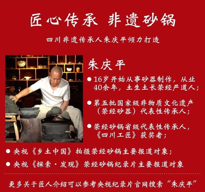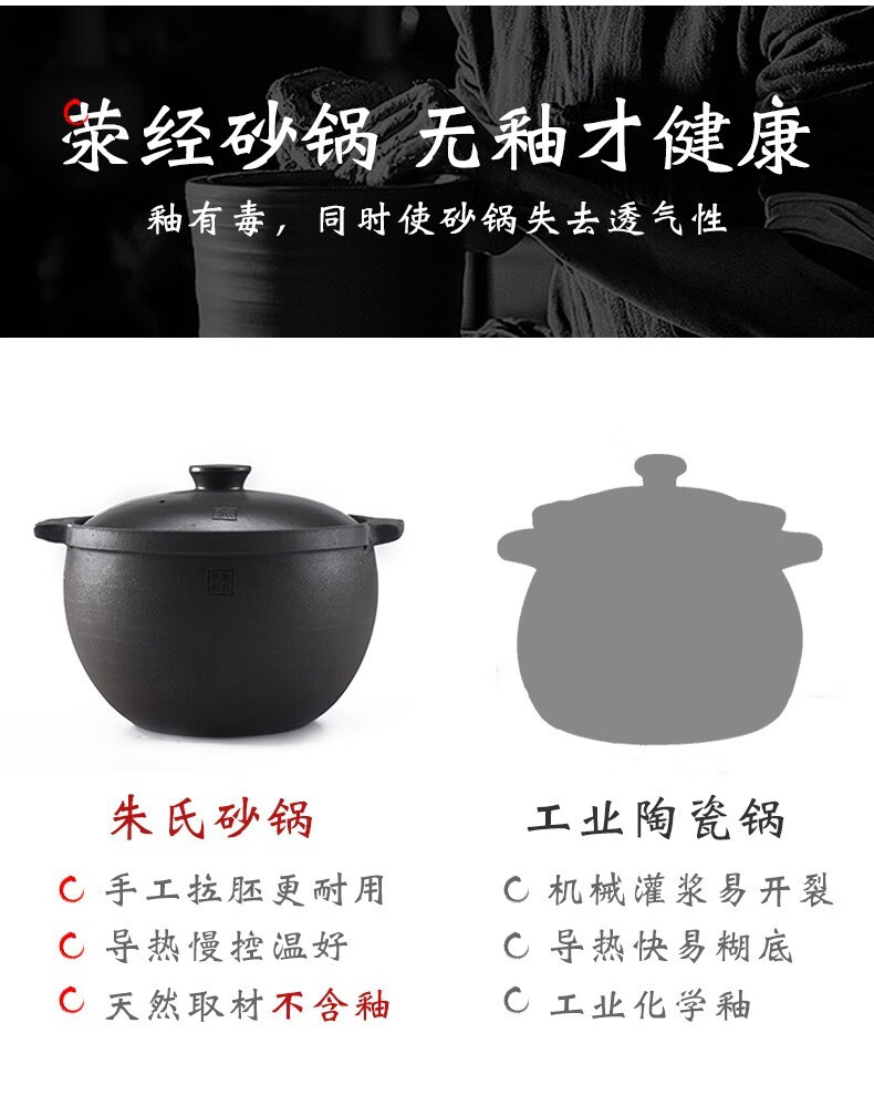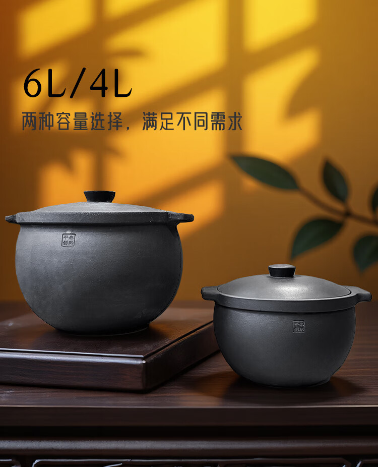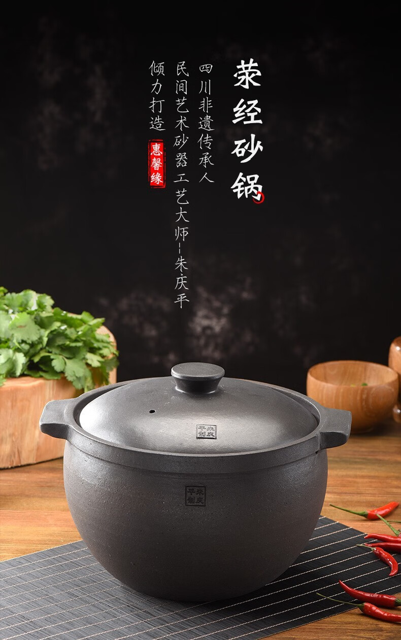 Zhu Qingping Sichuan Ya'an Yingjing black sand casserole Zhu's casserole black sand Zhu Qingping pure handmade earthen pot 4L (for 3-5 people) + cooking fee 4L