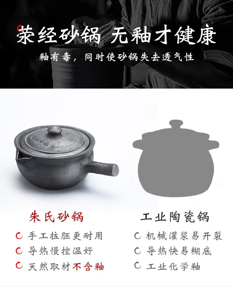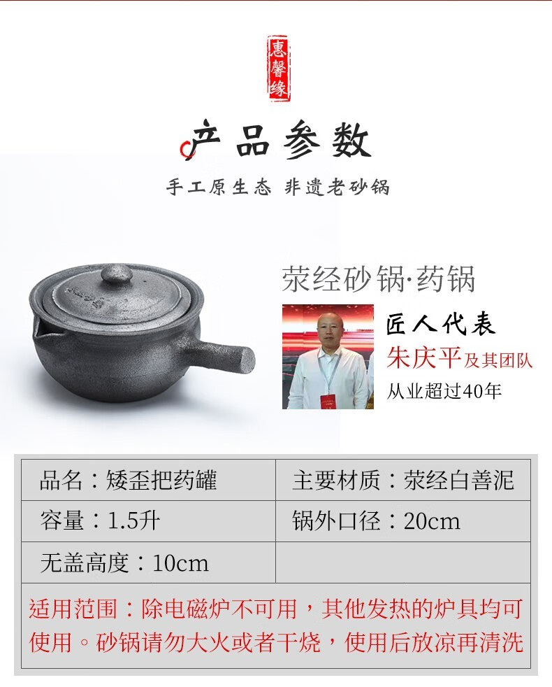 Zhu Qingping Yingjing Casserole Zhu's traditional Chinese medicine pot black casserole jar jar casserole pot for boiling medicine old-fashioned medicine pot for cooking medicine pot casserole 1.5 liters + boiling fee 1.5L