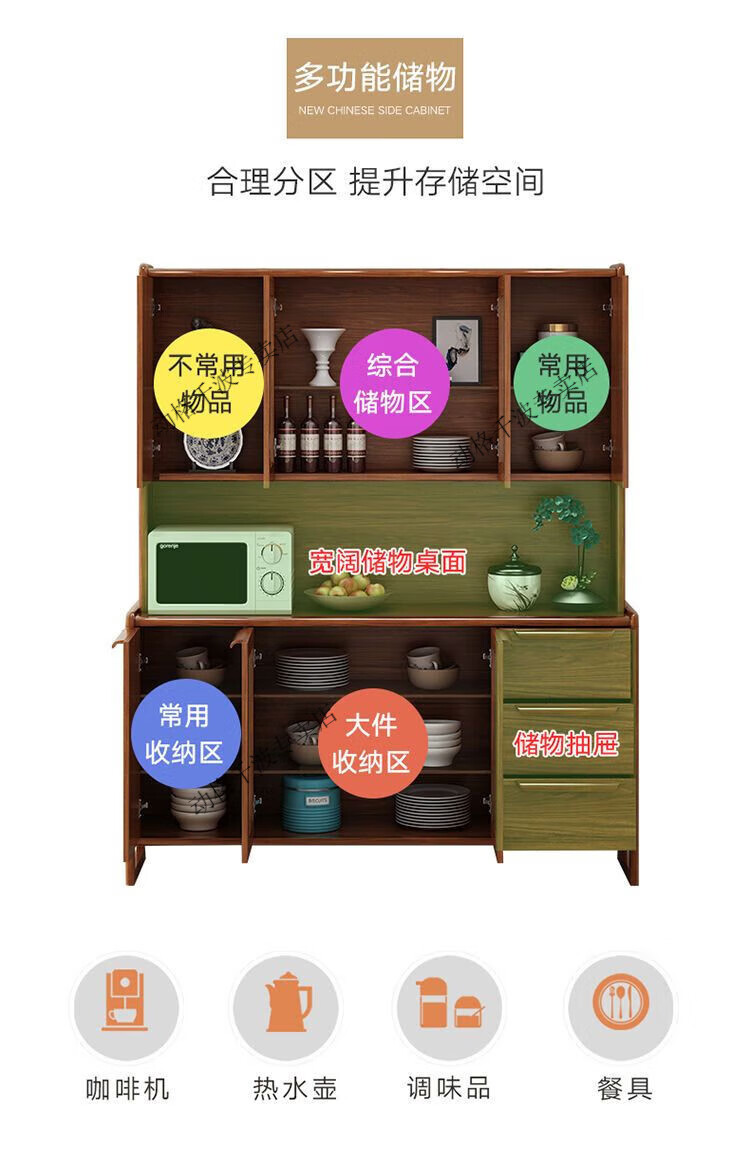 Dynamic solid wood color sideboard modern minimalist wine cabinet storage cabinet multi-functional new Chinese style kitchen storage cabinet Qiancheng A520 length 108 includes installation