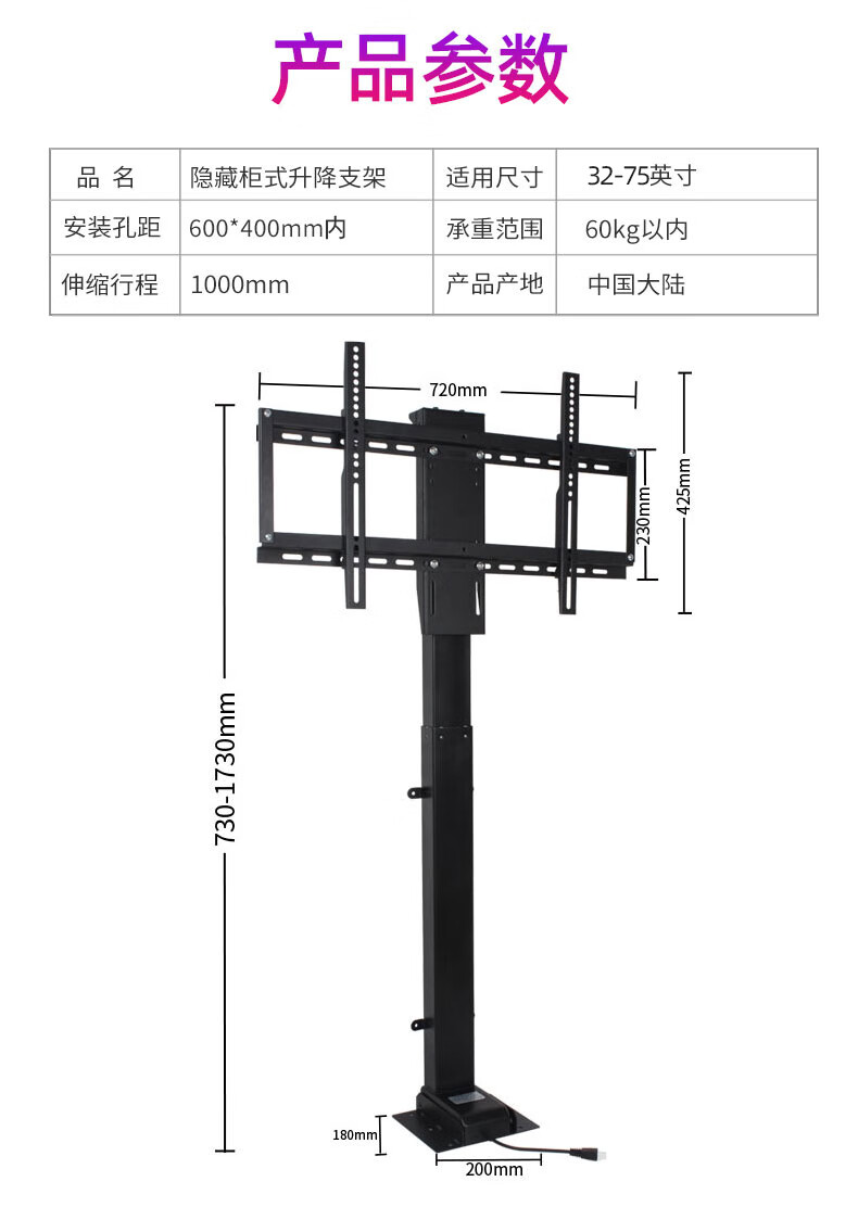 Jianleji 43-50-55-65-70-75-inch TV electric lifting bracket floor-standing hidden cabinet-type intelligent remote control telescopic heightening base hanging shelf lift three-section lifting 73-173 cm 32-70 inches