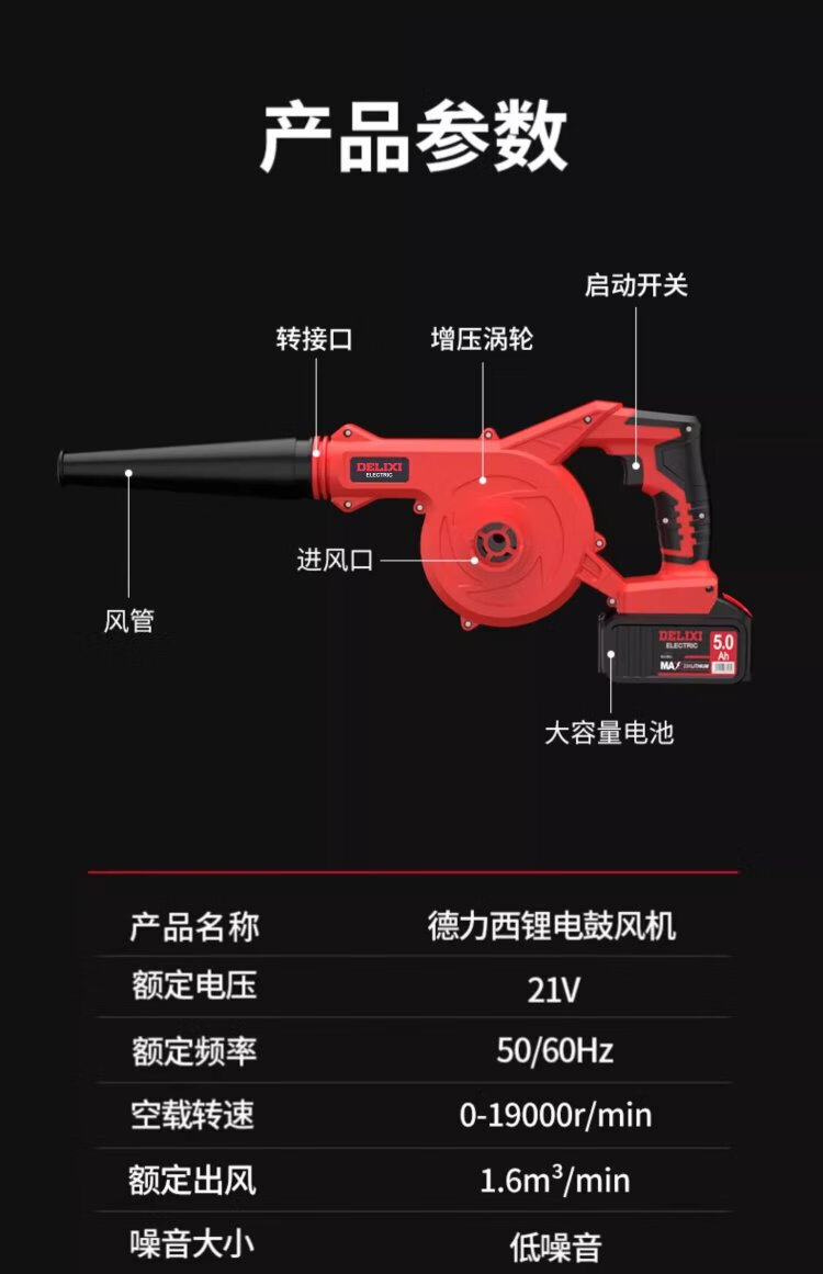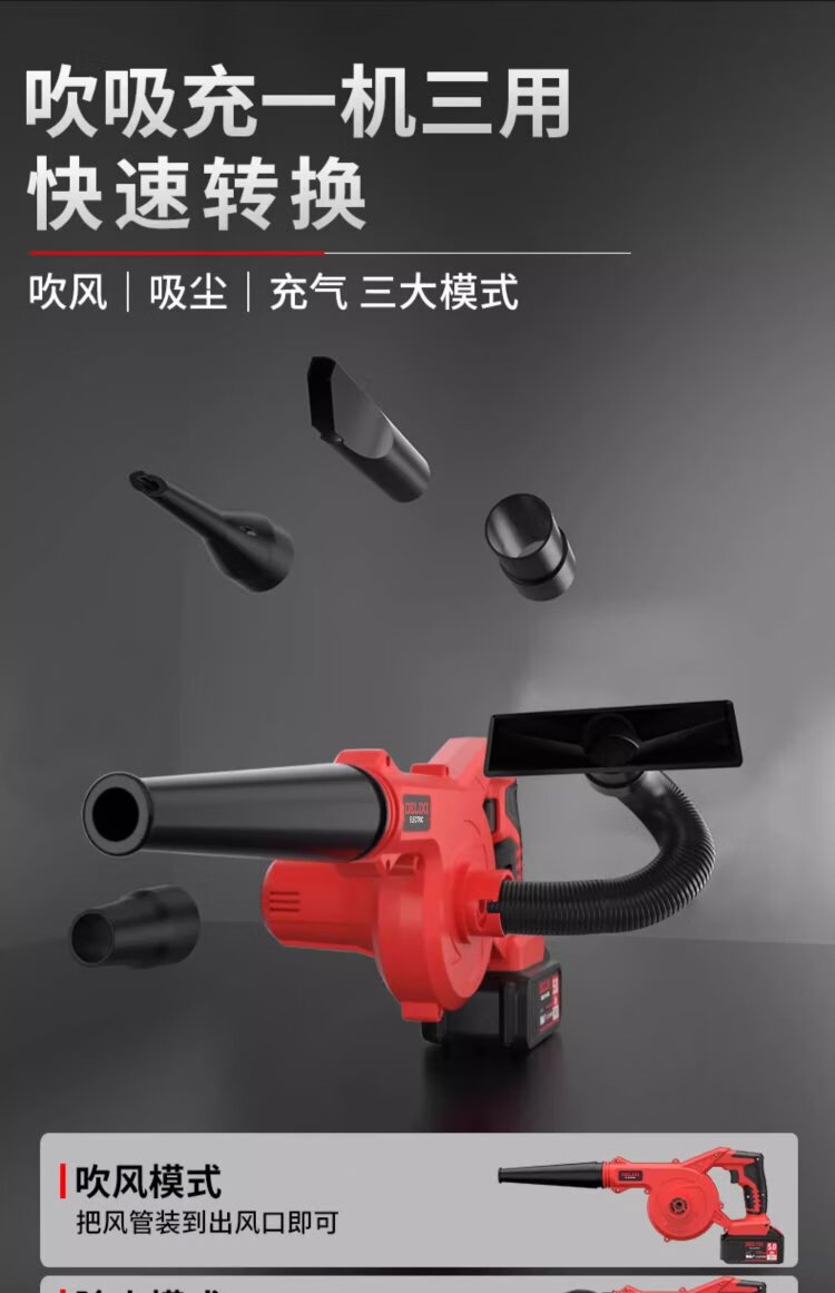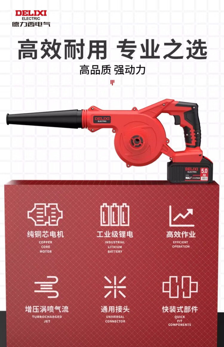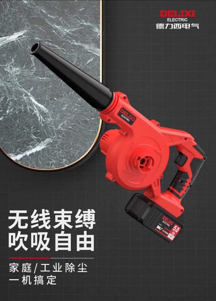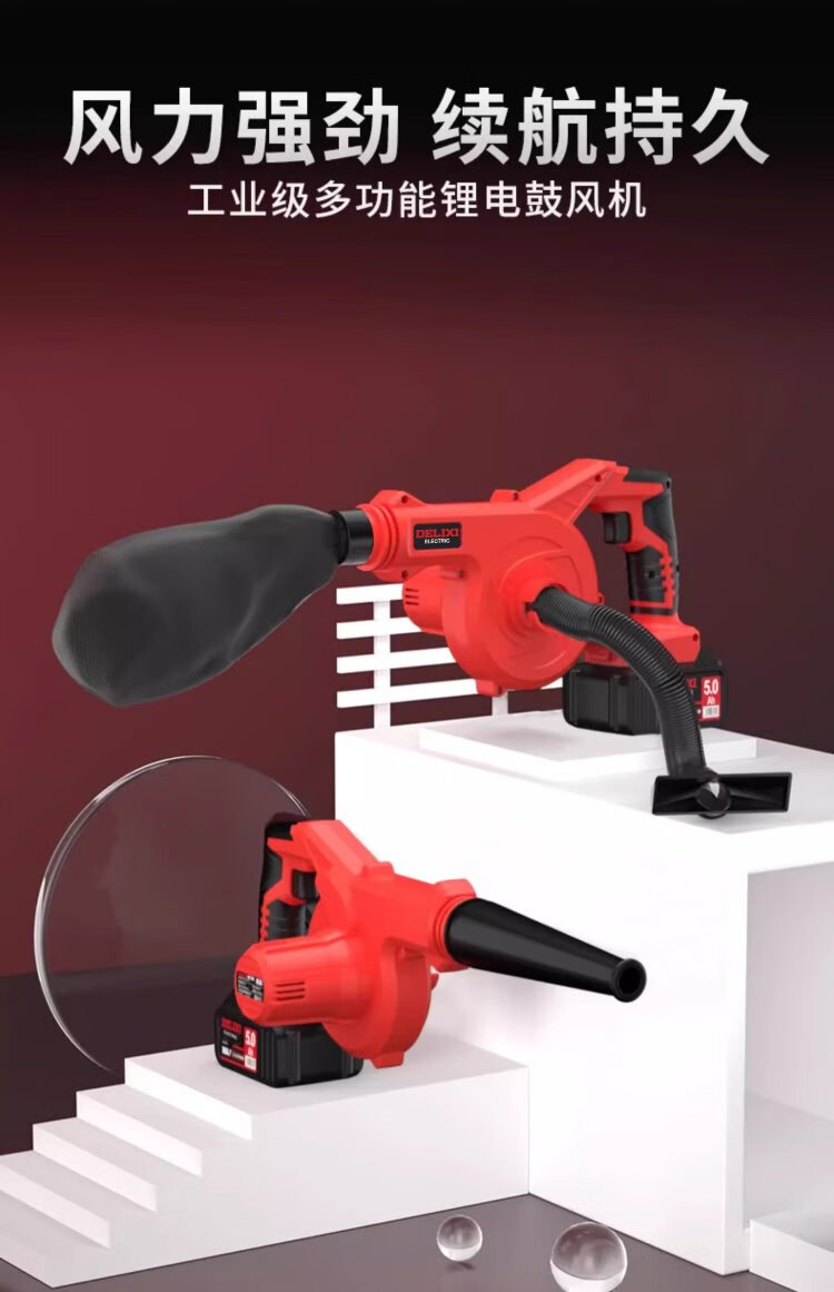 Delixi Lithium Electric Blower Small Household Dust Blower High Power Snow Blower Rechargeable Industrial Hair Dryer Wireless Dust Collector Lithium Electric Hair Dryer 4.0 Two Batteries + Inflatable Dust Collector Set