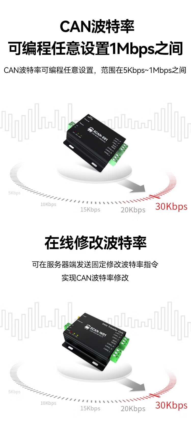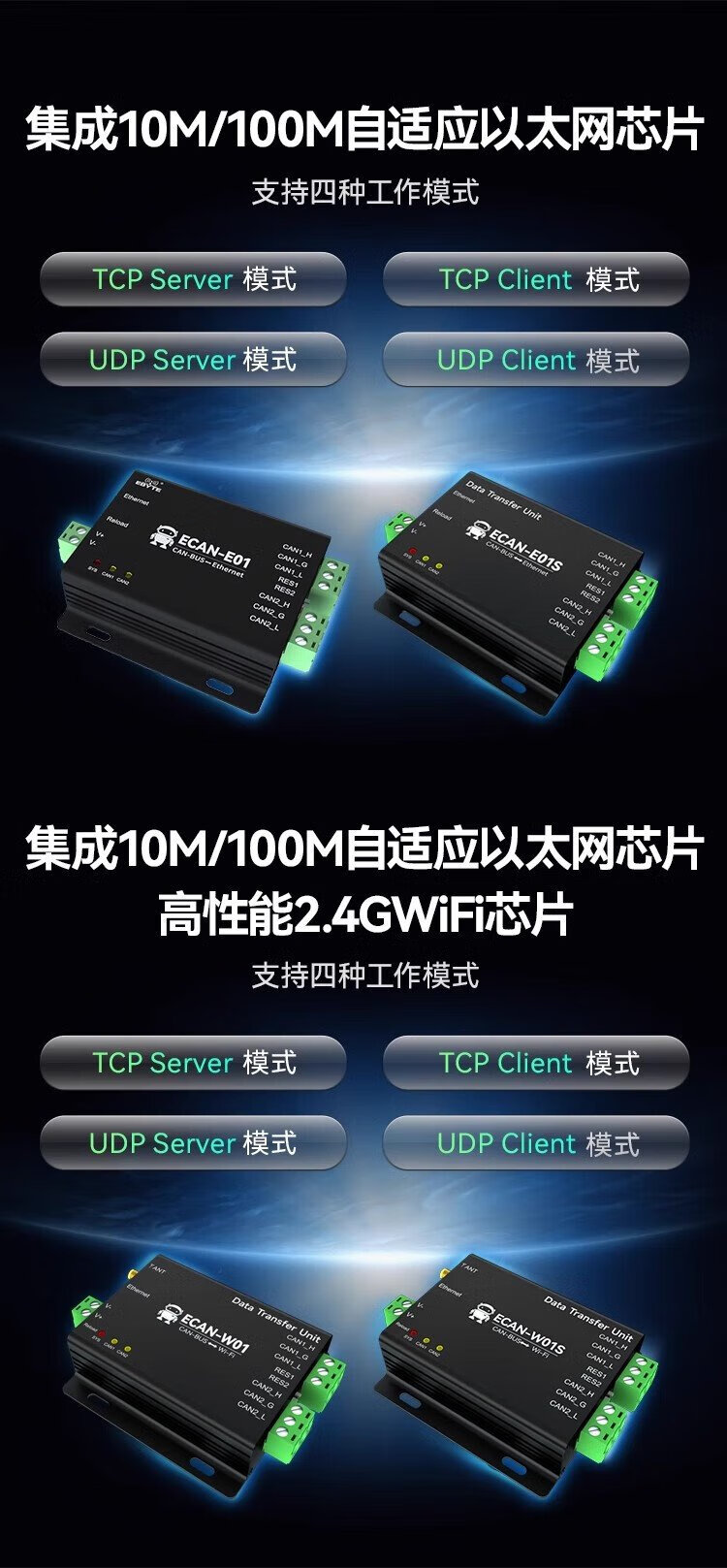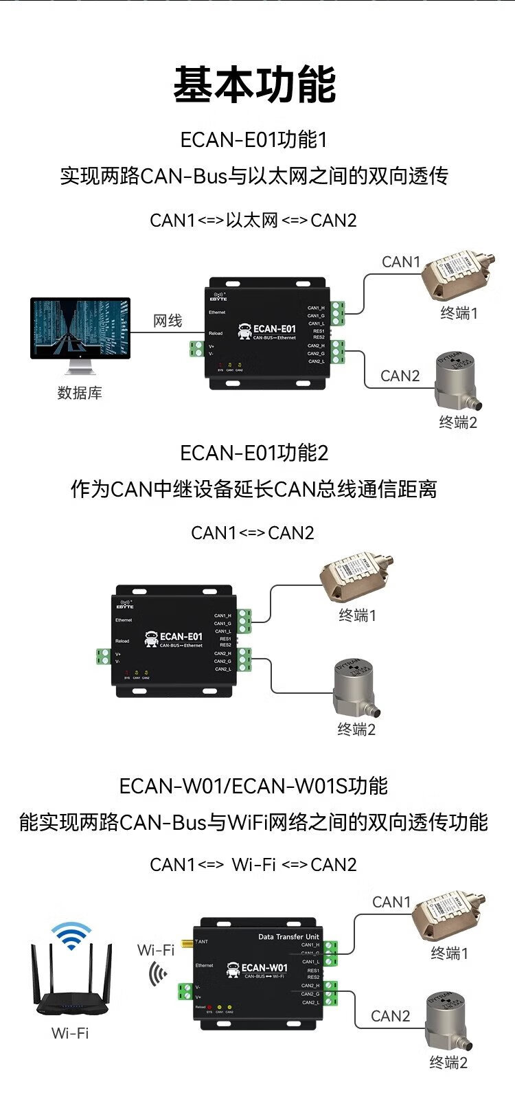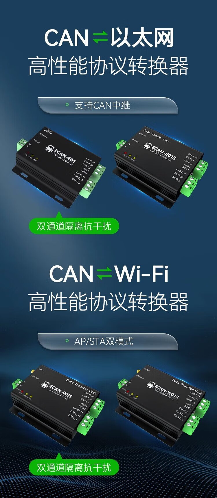 Ebyte CAN to WiFi smart converter high-performance dual-channel protocol bidirectional transparent transmission AP/STA dual-mode isolation anti-interference high protection port dual-channel isolation CAN to WiFi ECAN-W01