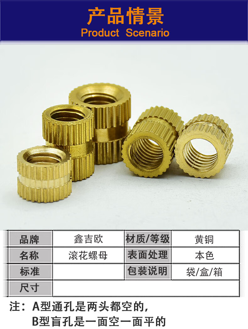 XINJIOU A-type injection molded copper nut through hole copper inlaid nut inlay brass knurled nut copper flower nut M2M5M6 M2*3* outer diameter 3.2 (500 pieces)