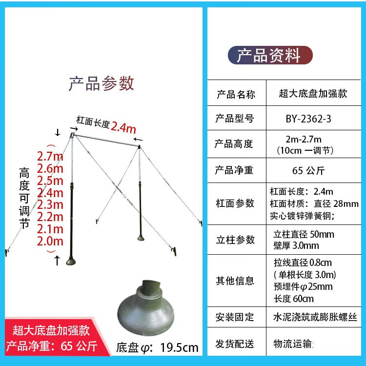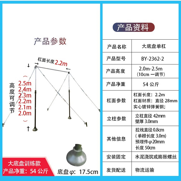 XMSJ outdoor horizontal bar training single and parallel bar equipment competition pull-up outdoor physical fitness home fitness single bar adjustable fixed single bar large chassis training model