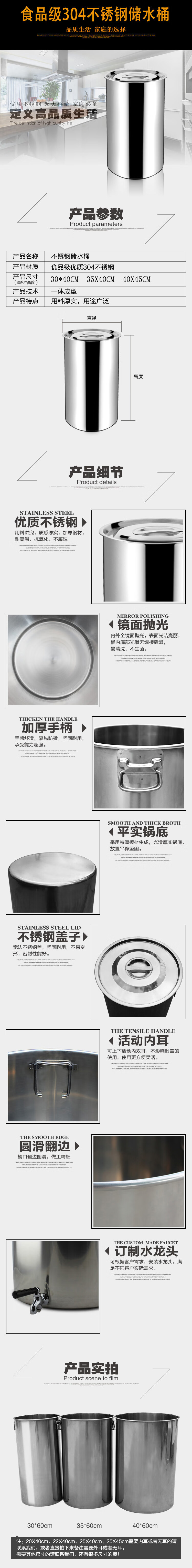 Jinboxi 304 stainless steel water storage bucket tall pool round bucket with lid soup bucket inner double ear bucket inlaid household large capacity diameter 20cm height 40cm capacity 13 liters inner ear