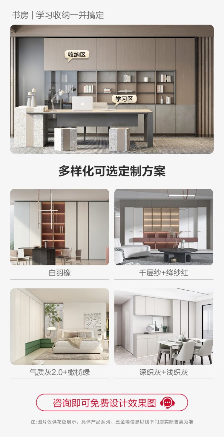 KUKA Whole House Customized Environmentally Friendly Panels Bedroom Overall Wardrobe Cloakroom Large Wardrobe Living Room Entrance Cabinet Study Cabinet 59800/set (Consult customer service to place an order)