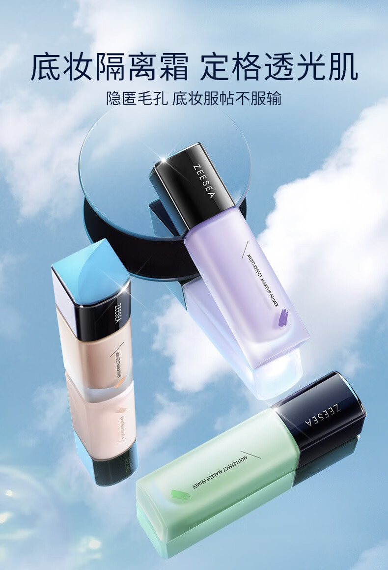 ZEESEA multi-effect isolation cream, long-lasting concealer, moisturizing primer for school girls, nude makeup, invisible pores, purple (suitable for dull skin) 30g