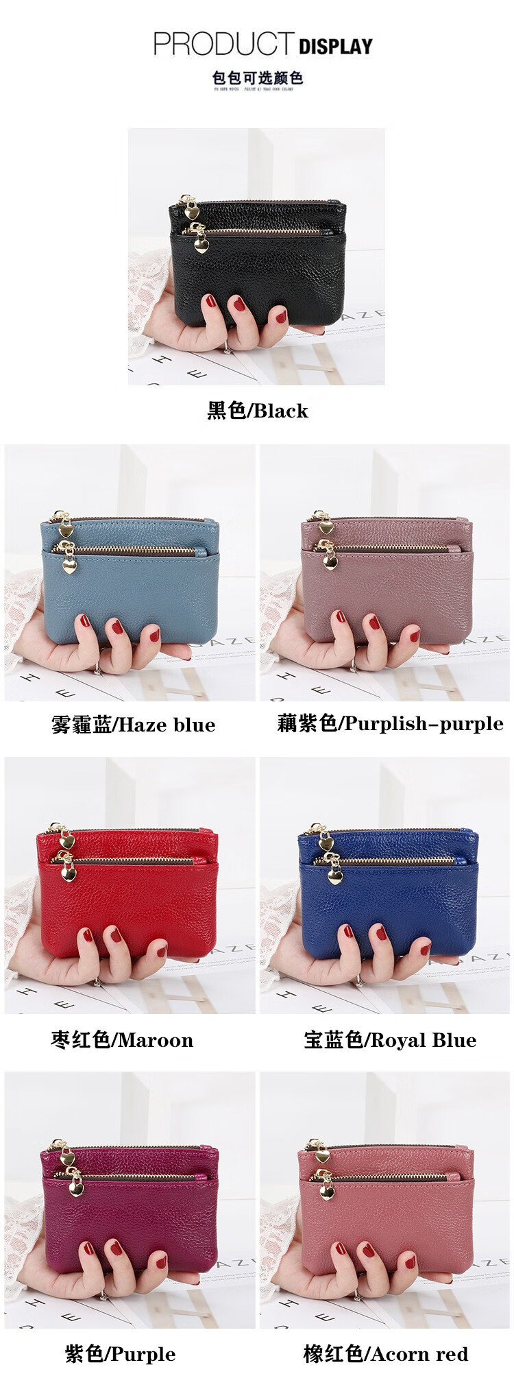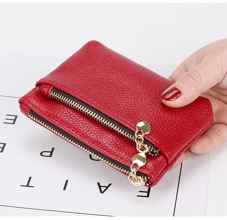 Woodpecker (TUCANO) genuine leather texture new small coin purse women's short soft leather handbag zipper coin wallet card bag for women maroon