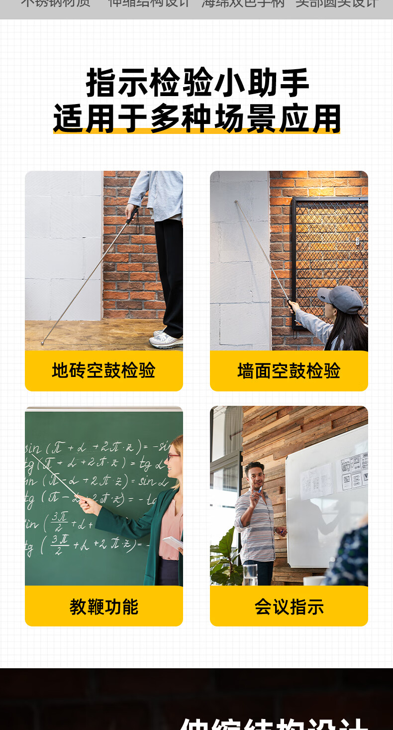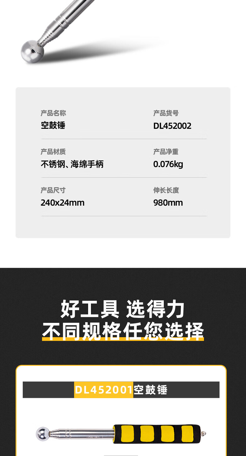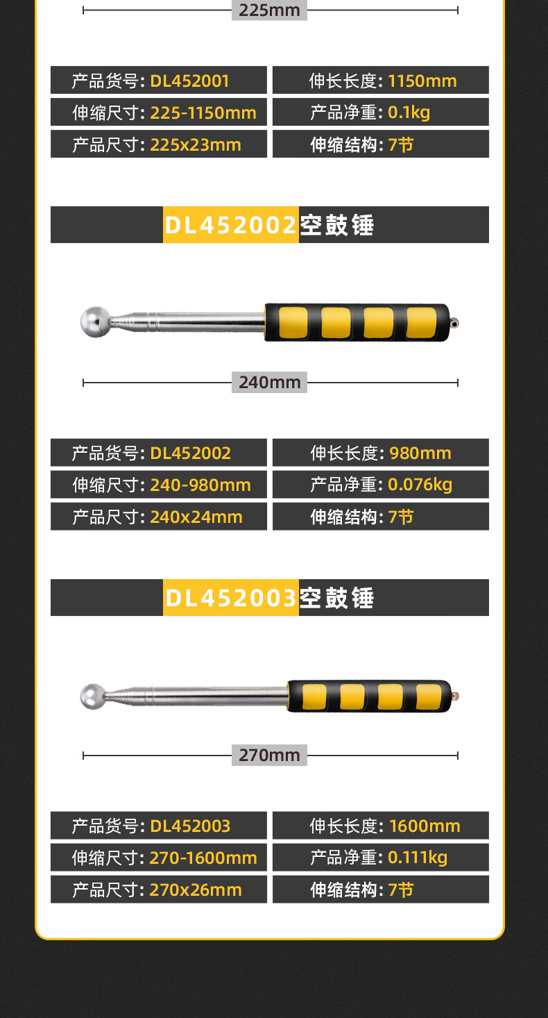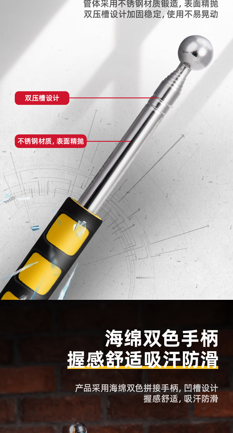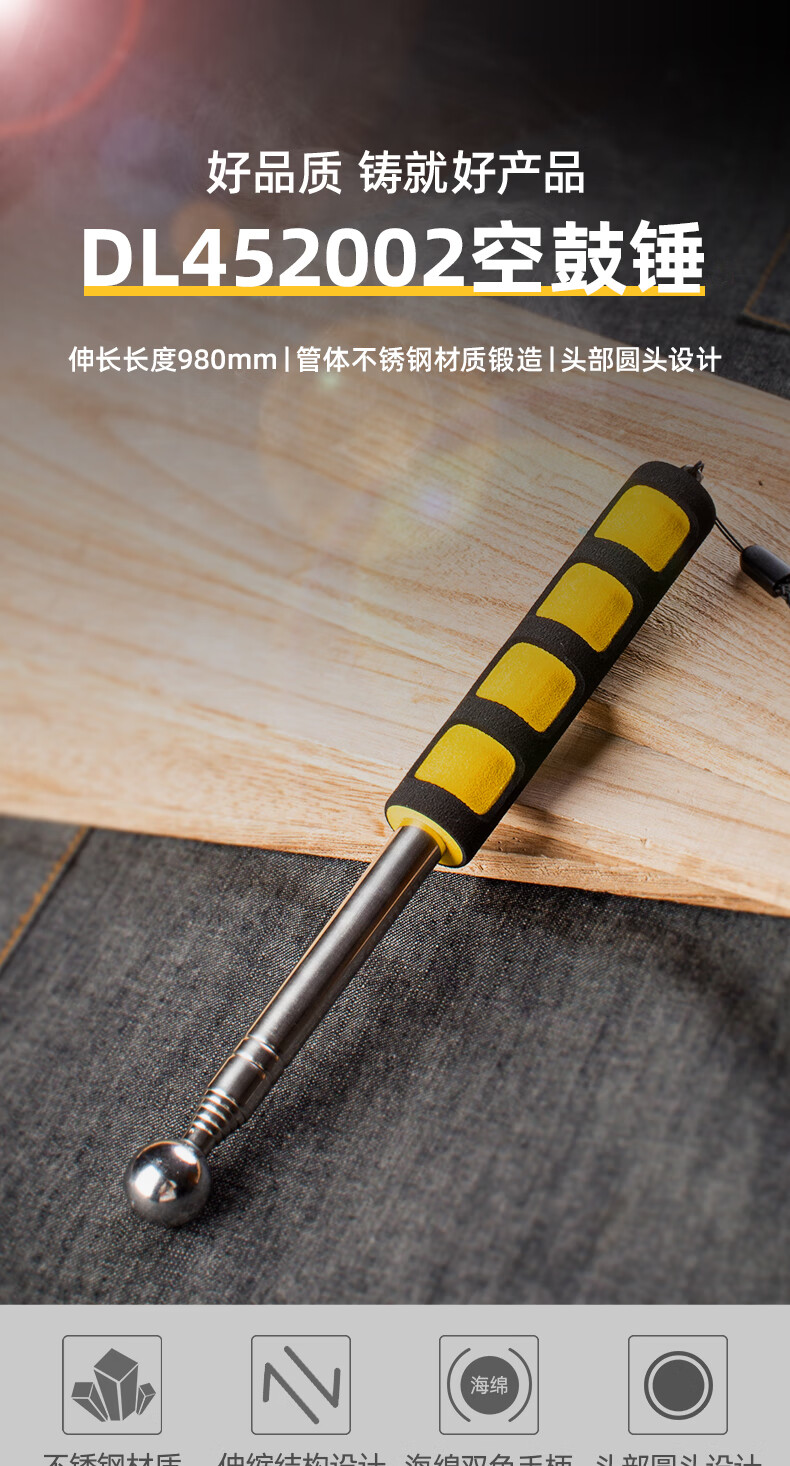 Deli empty drum hammer home inspection tool set thickened telescopic home inspection hammer knocking tiles acceptance room inspection rod detection ring drum hammer empty drum hammer 160cm DL452003