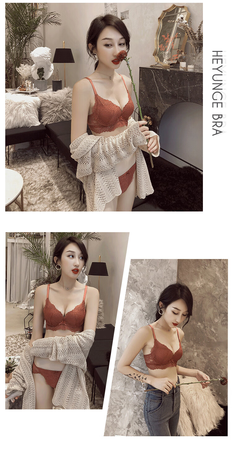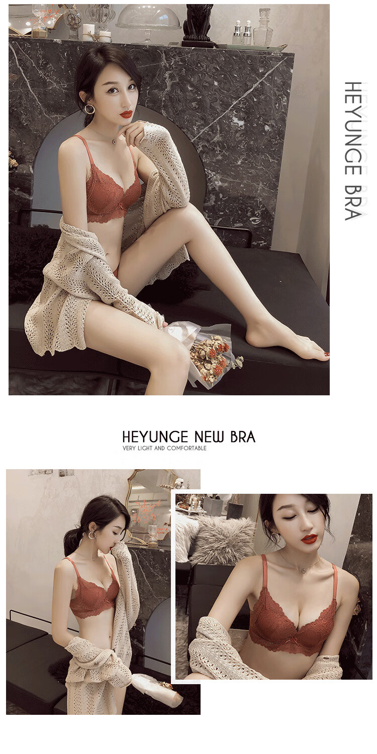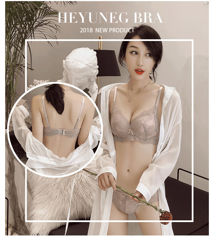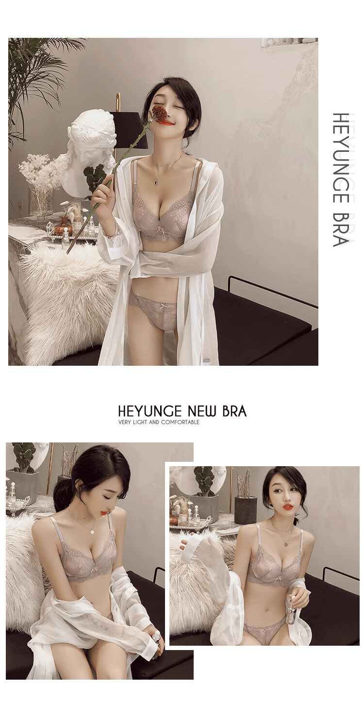 Maohuo (MAOHUO) Original Victoria Sexy Lace Temptation Beautiful Back Push-up Wireless Brand Bra Set Bra Bra Women Gray Purple Set Gift Box 75B