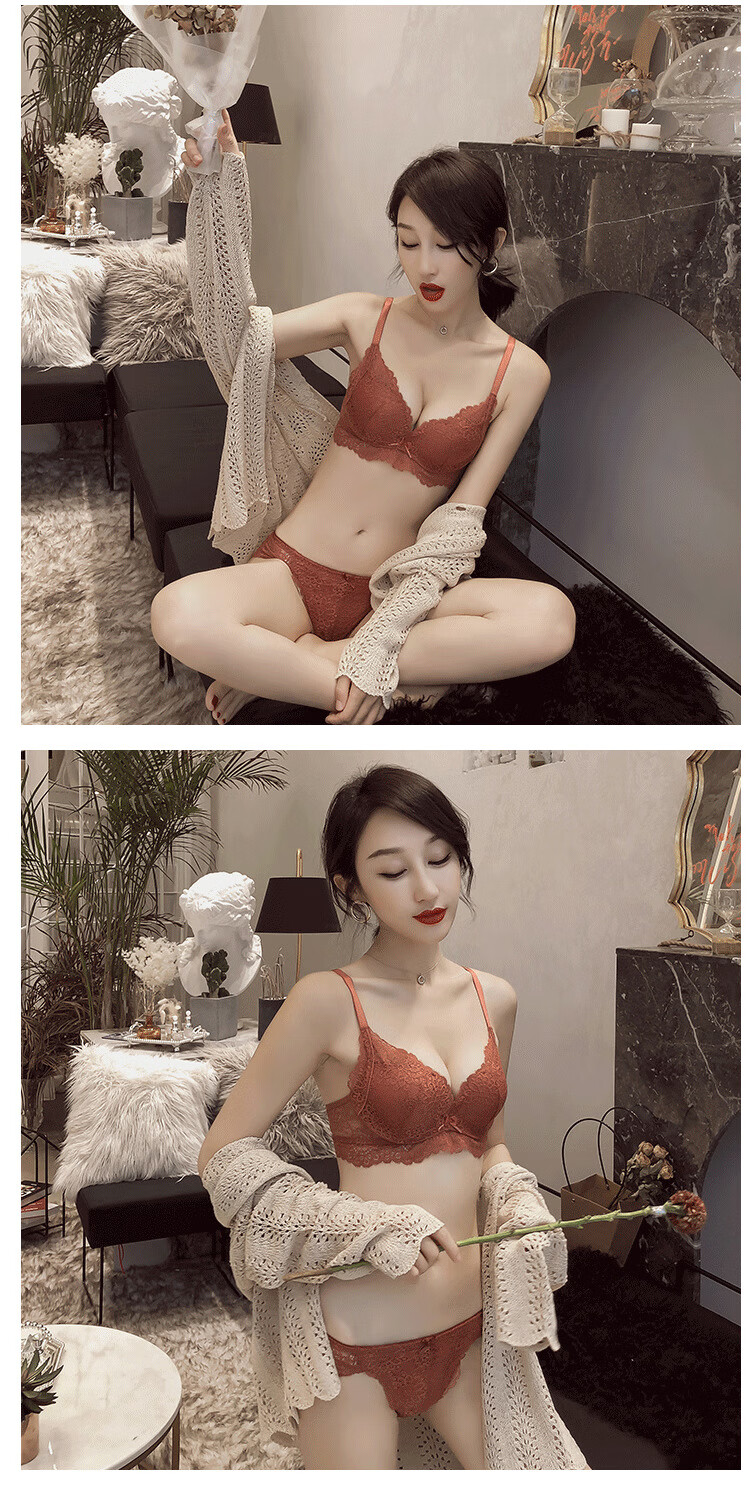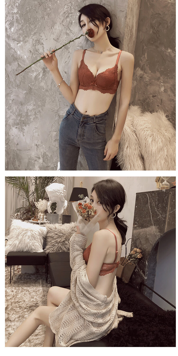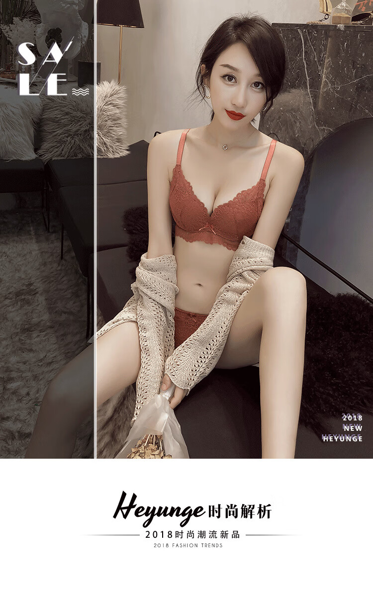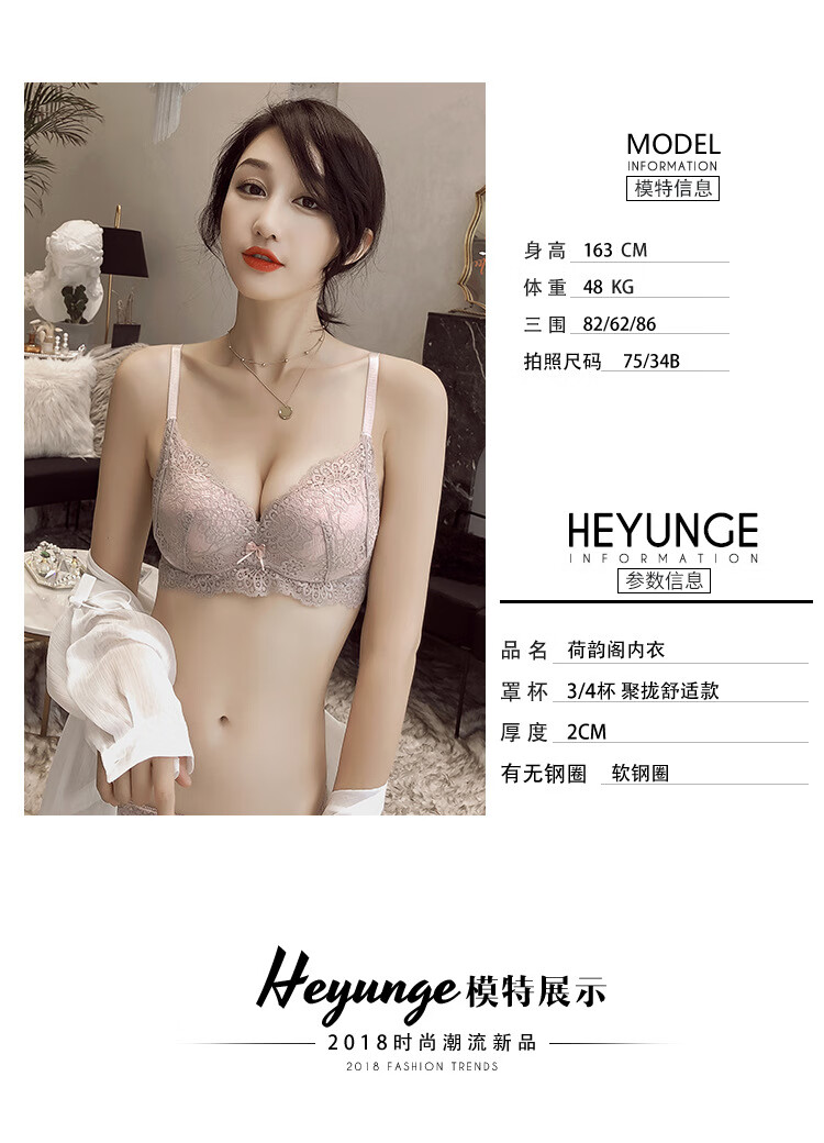 Maohuo (MAOHUO) Original Victoria Sexy Lace Temptation Beautiful Back Push-up Wireless Brand Bra Set Bra Bra Women Gray Purple Set Gift Box 75B