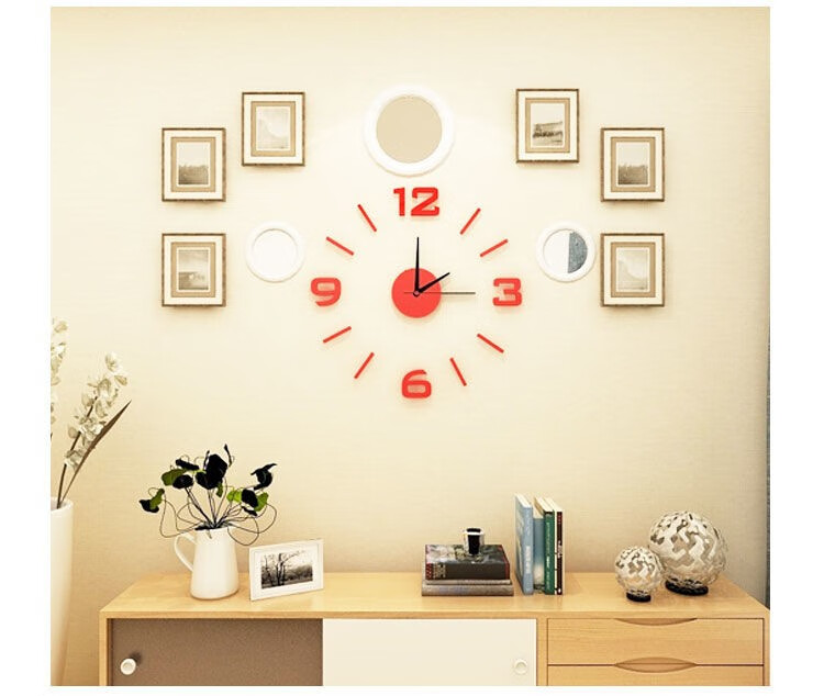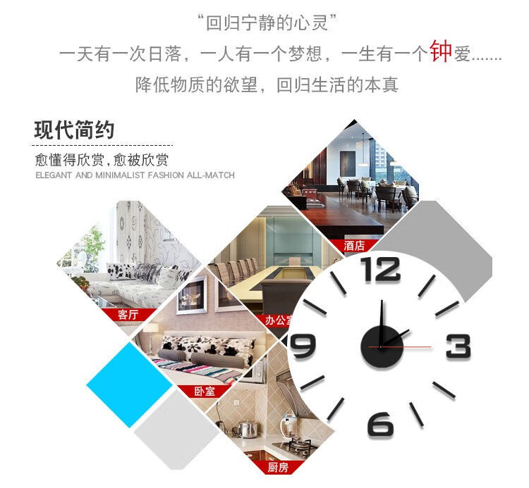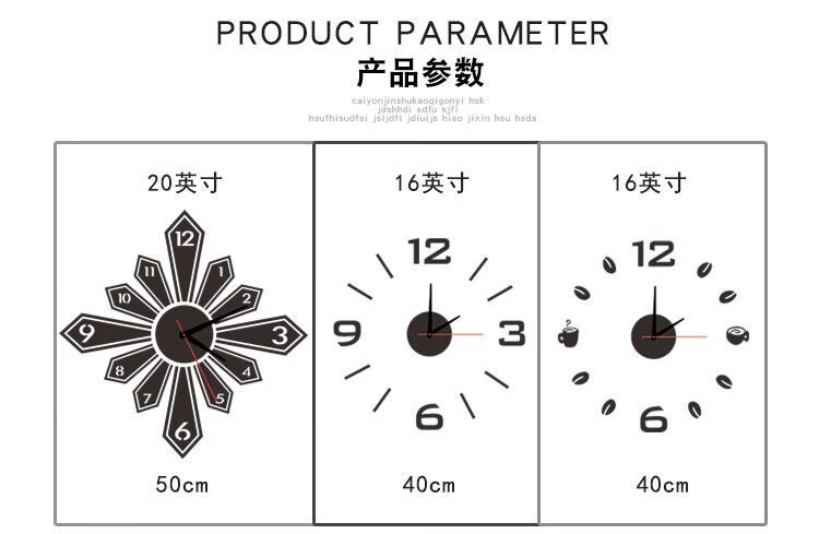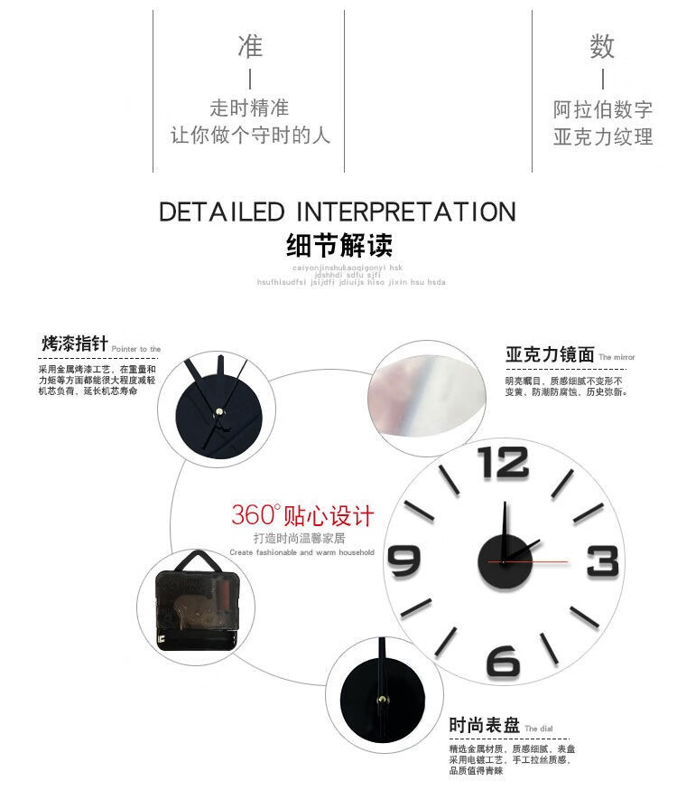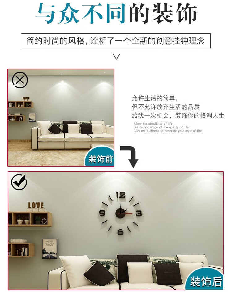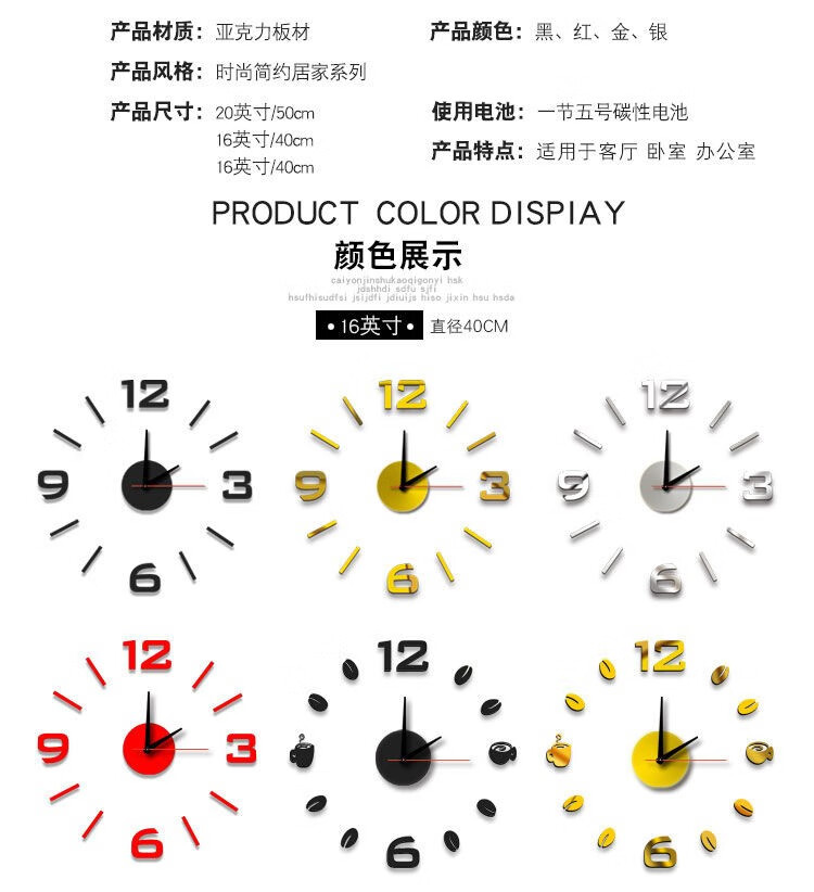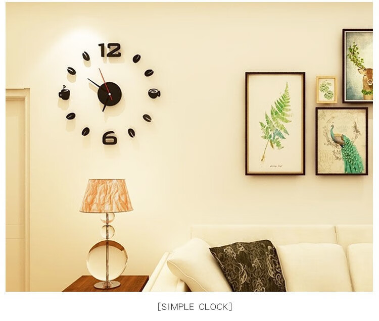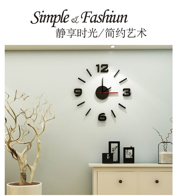 Drum group wall clock wall punch-free simple creative clock watch living room home bedroom wall sticker elegant black 40cm diameter