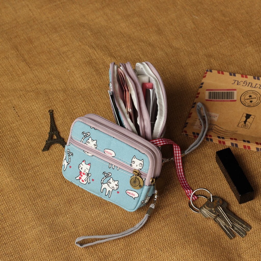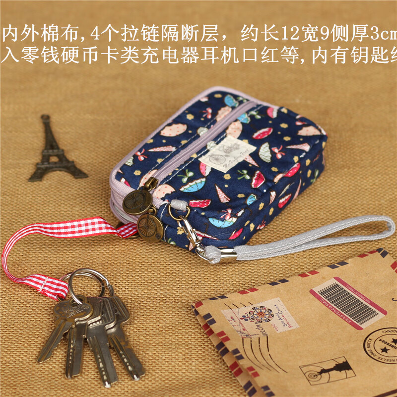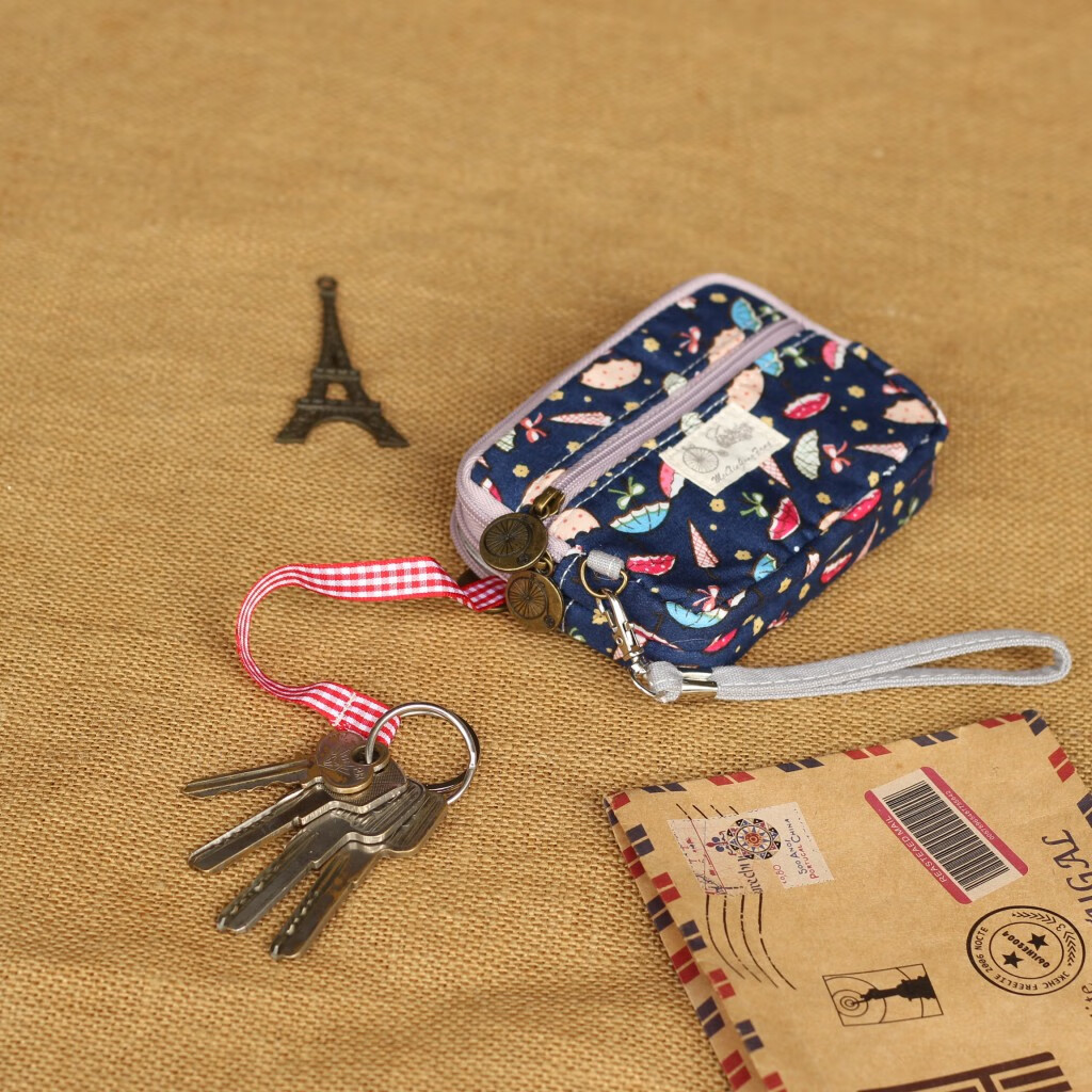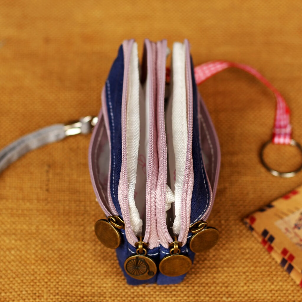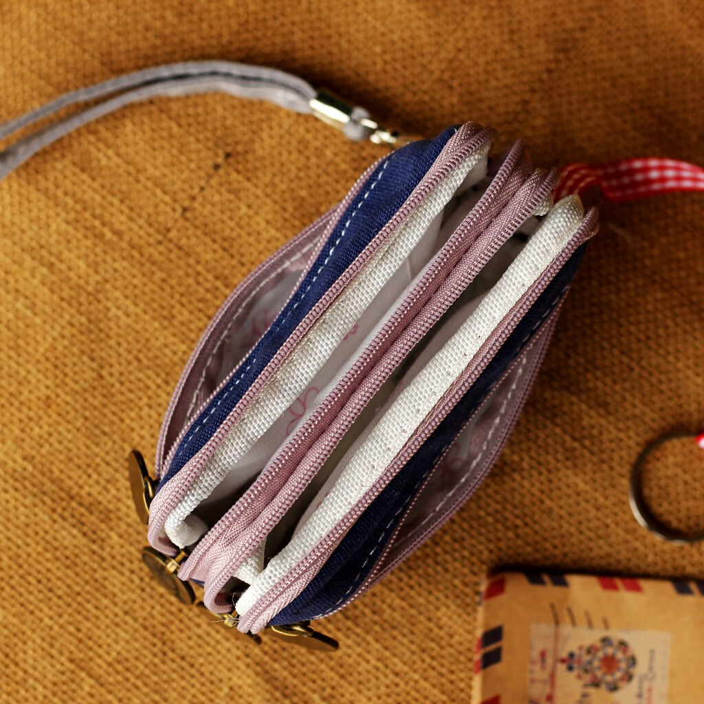 Kuqi Kangaroo Key Coin Purse Women's Short Canvas Clutch Simple Four-Layer Zipper Handbag Men's Small Bag Large Capacity Dark Blue 4 Zippers.S