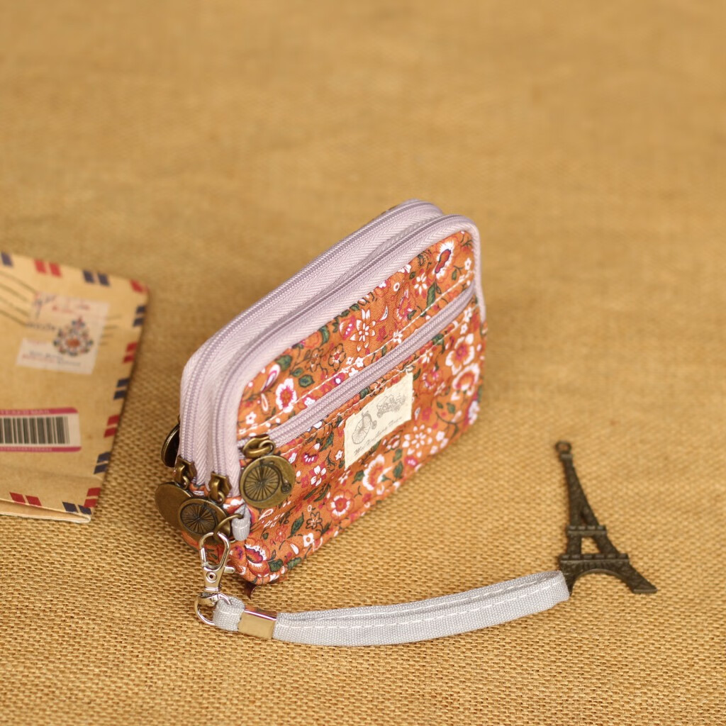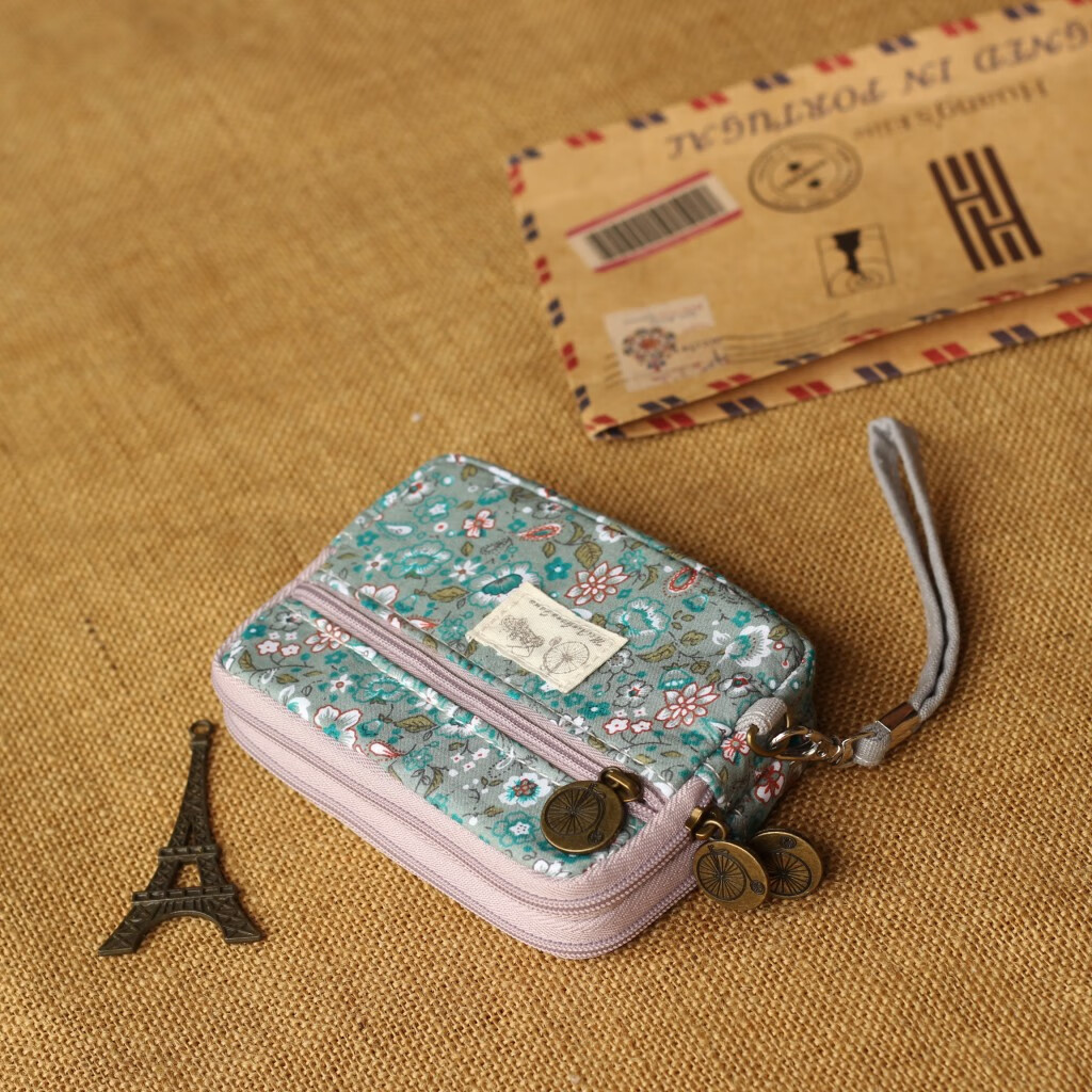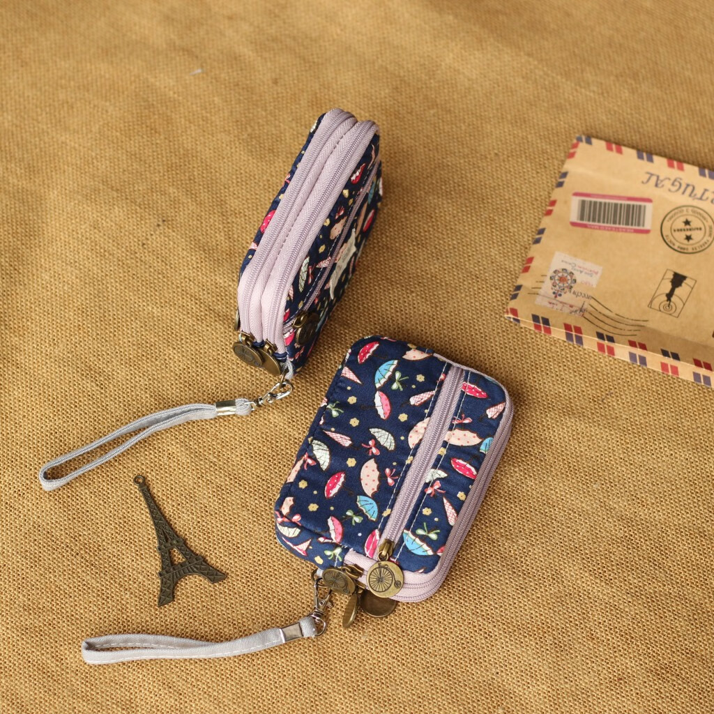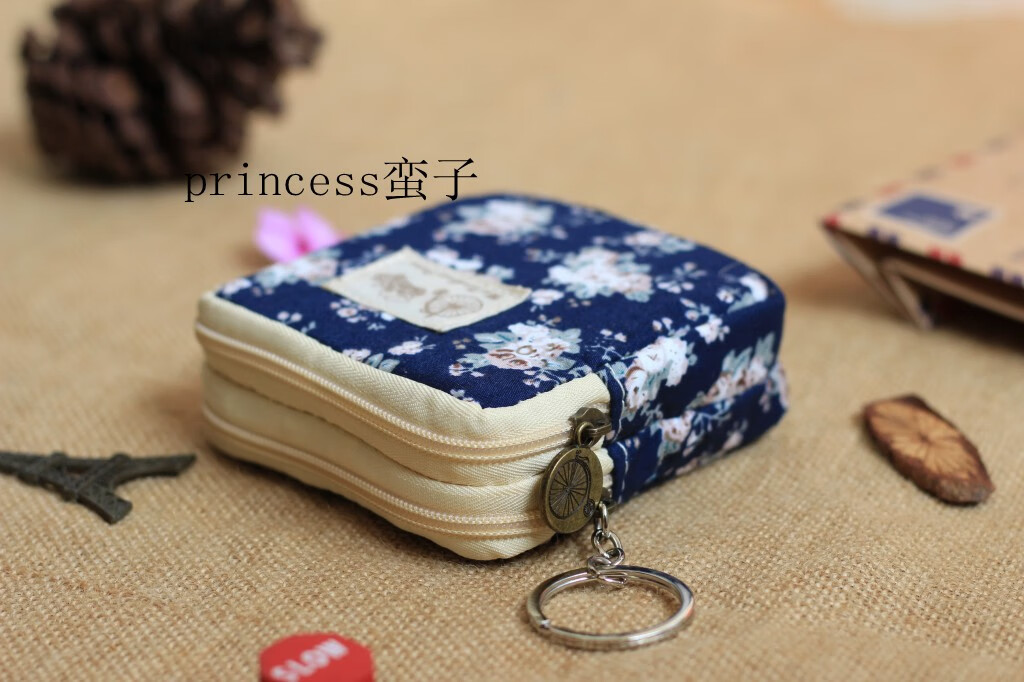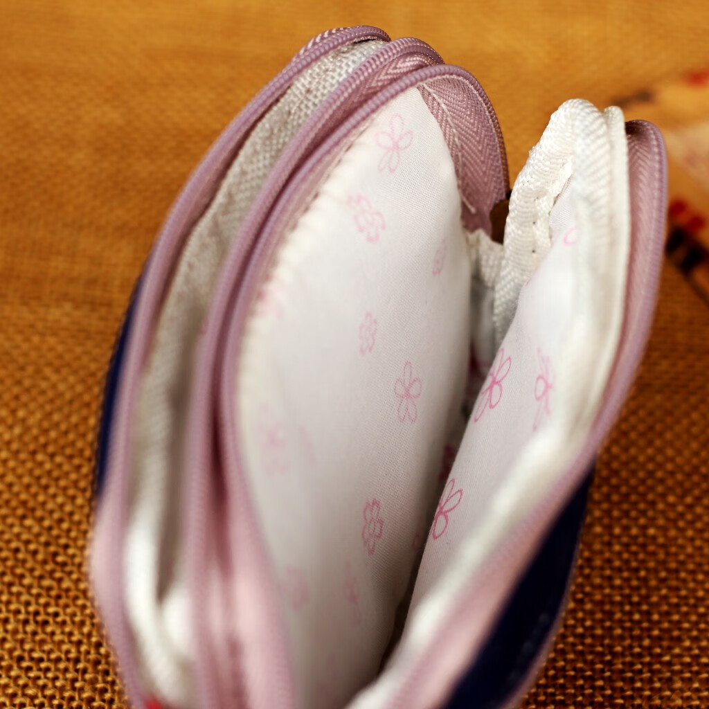 Kuqi Kangaroo Key Coin Purse Women's Short Canvas Clutch Simple Four-Layer Zipper Handbag Men's Small Bag Large Capacity Dark Blue 4 Zippers.S
