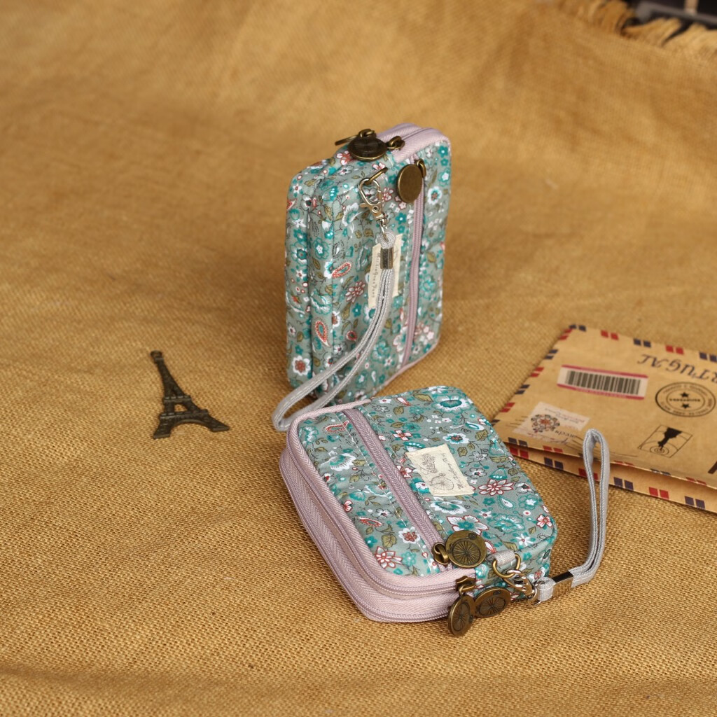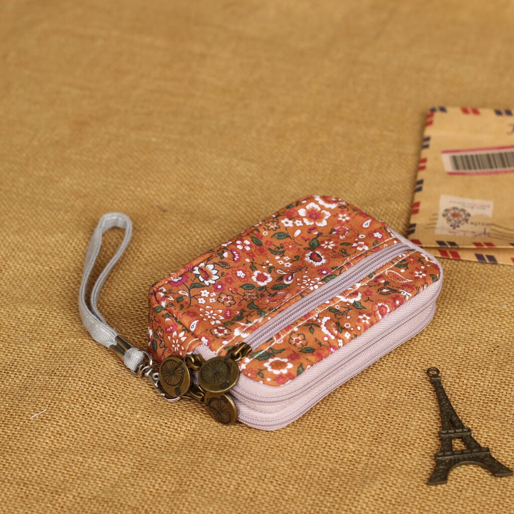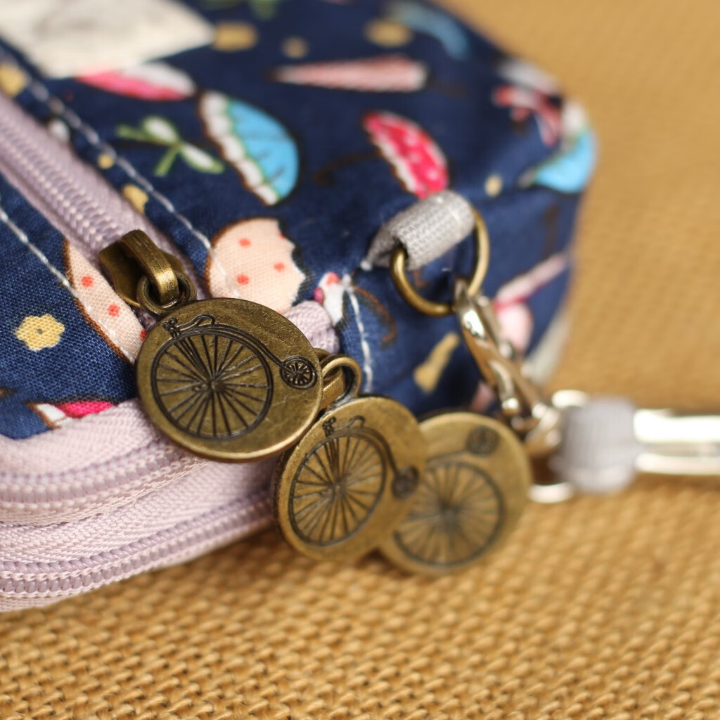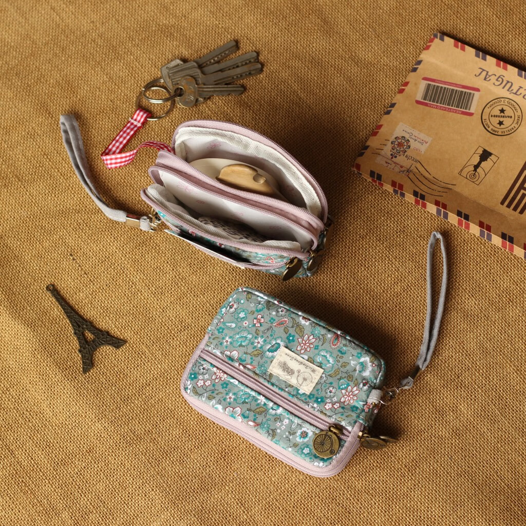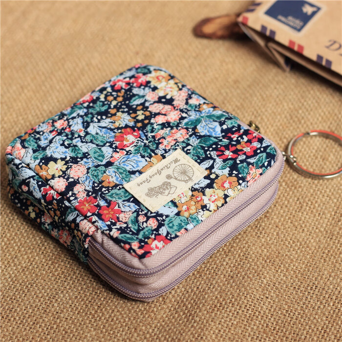 Kuqi Kangaroo Key Coin Purse Women's Short Canvas Clutch Simple Four-Layer Zipper Handbag Men's Small Bag Large Capacity Dark Blue 4 Zippers.S
