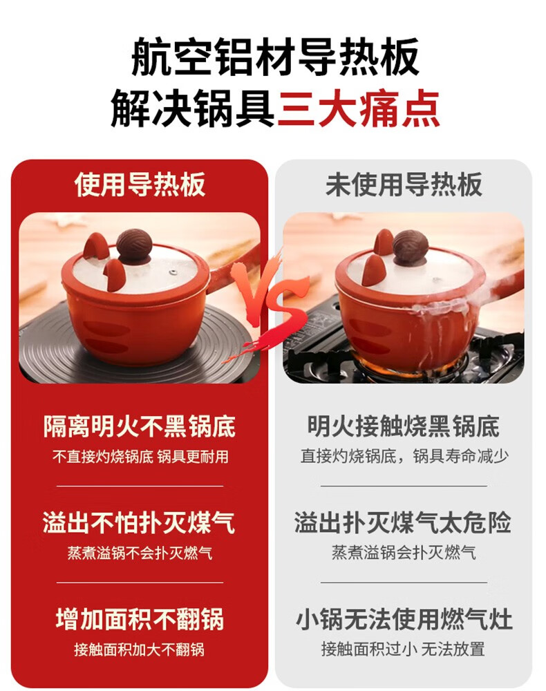 Jingyan heat conductor plate for gas stove gas enamel pot heat conductor plate multi-functional household thawing pot guard plate anti-burning black heat conductor sheet anti-slip diameter 24cm thick 4mm with handle