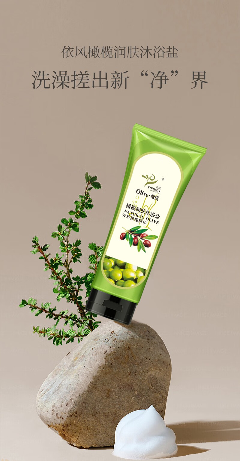 YIFENG Olive Moisturizing Bath Salt Body Back Scrub Cleansing Bath Salt Granules Bath Mud 200g*1