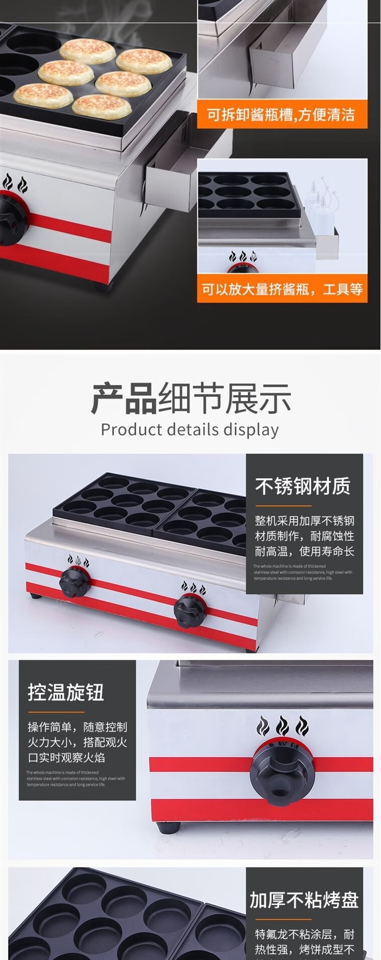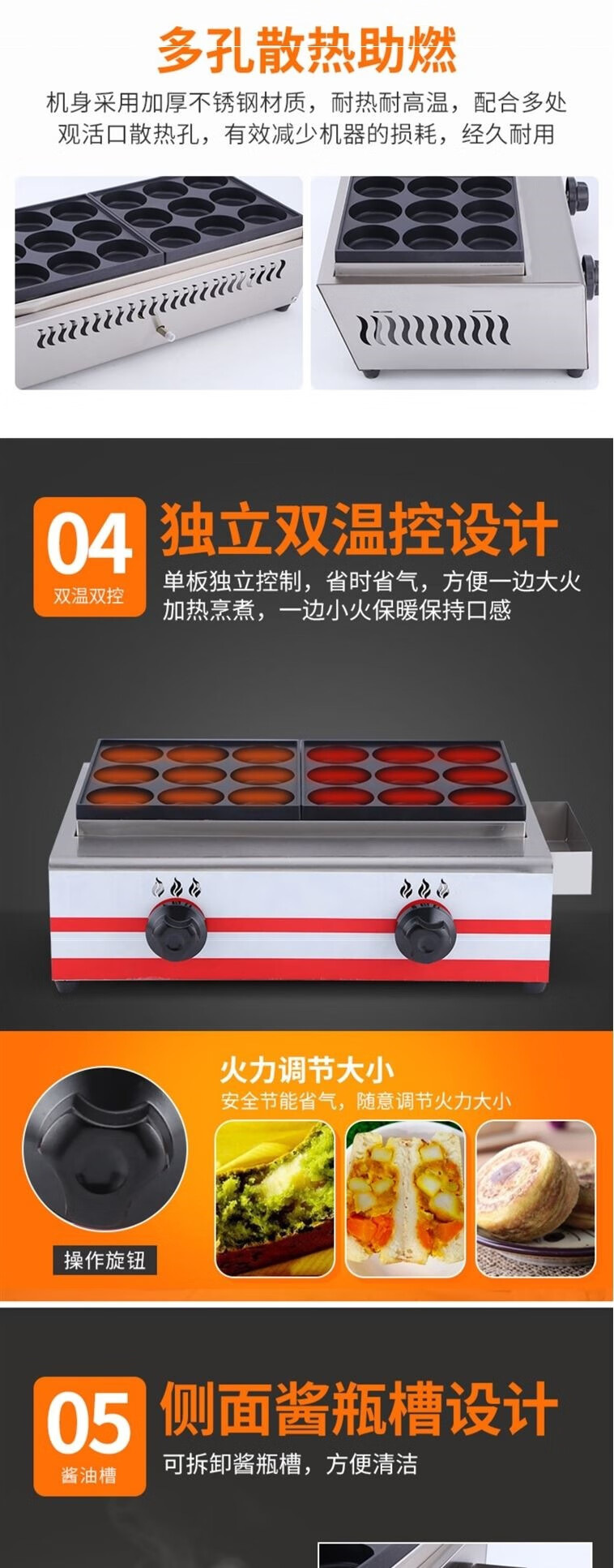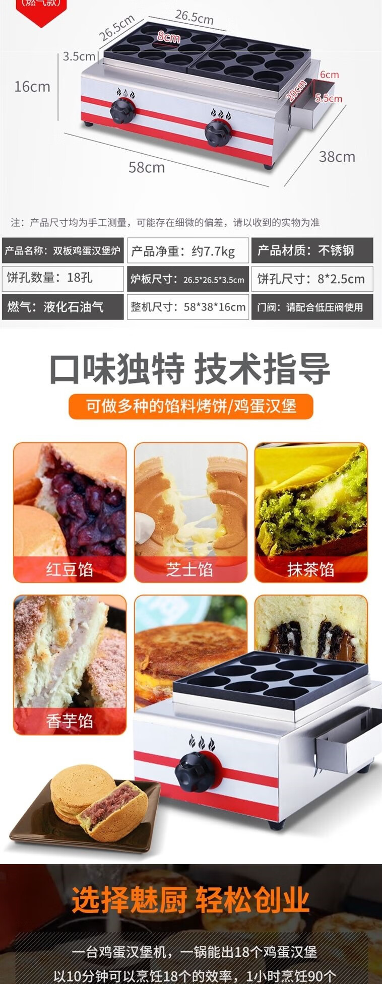 Egg burger machine stall commercial egg burger stove gas 18 hole meat and egg burger machine 0 wheel cake machine red bean cake machine short cloud 18 hole egg burger machine-gas type-8CM-honeycomb stove-tools
