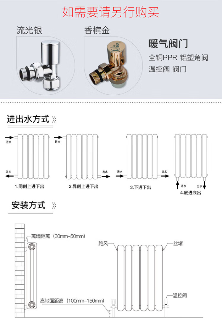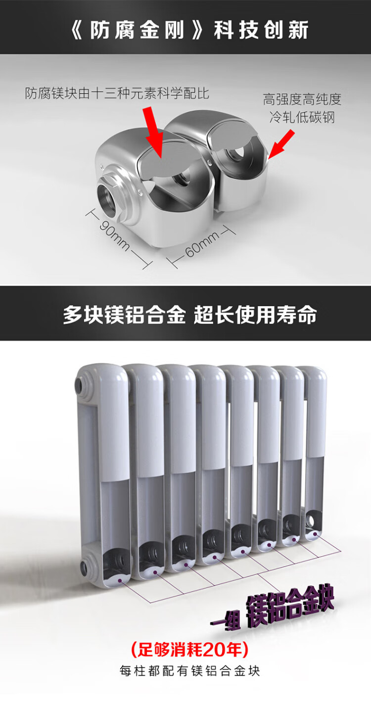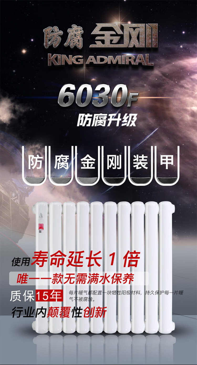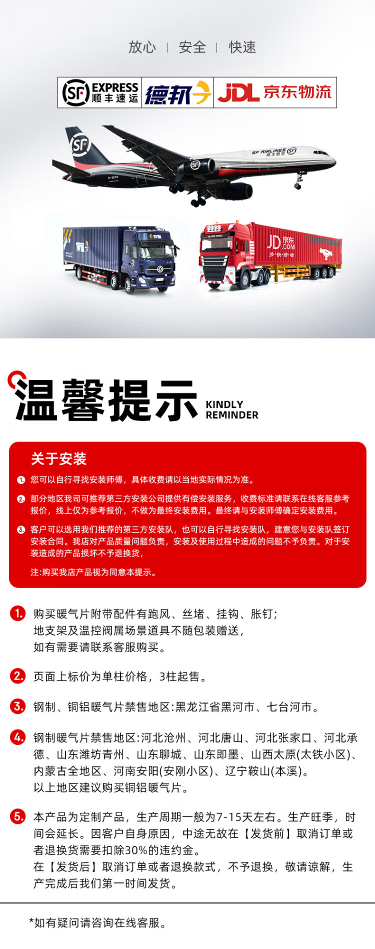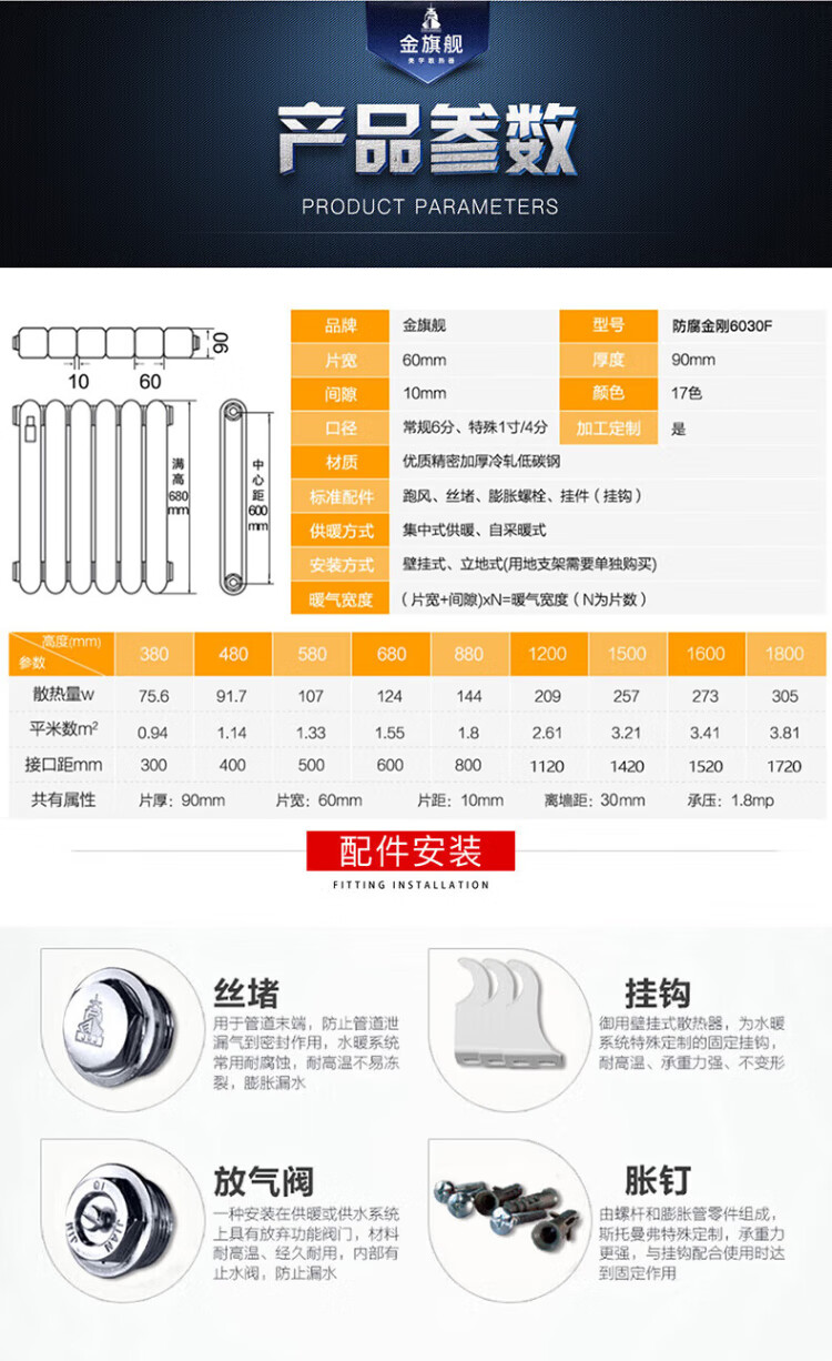 Gold flagship radiator household steel plumbing wall-mounted whole house heating customized central heating self-heating vertical radiator anti-corrosion King Kong 60F-height 1800mm 6 points