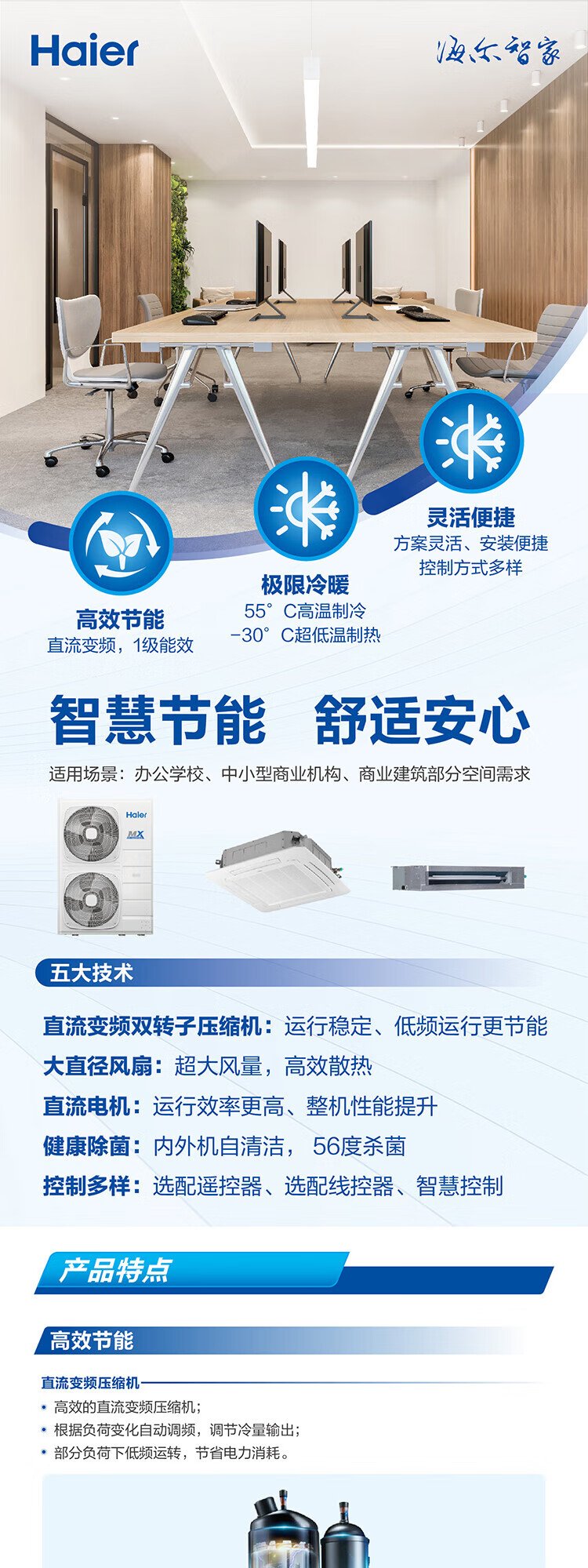 Haier 10 HP one-to-two 15 HP one-to-three 20 HP one-to-four central air conditioner (labor included but not copper pipe) ceiling fan duct machine office supermarket restaurant shop facade 20 HP set one-to-four ceiling machine 300-400 about 300-400 including installation