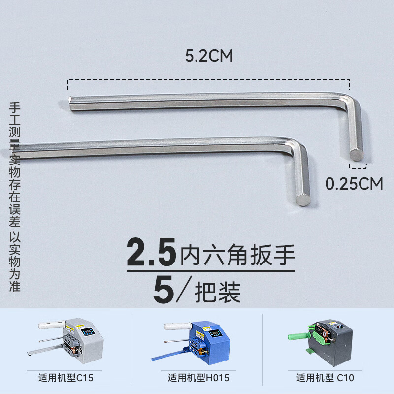 Calabash film inflator accessories belt blade rubber wheel bubble pillow air cushion machine original tool consumables 2.5 hexagonal wrench 5 pieces