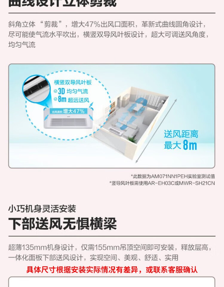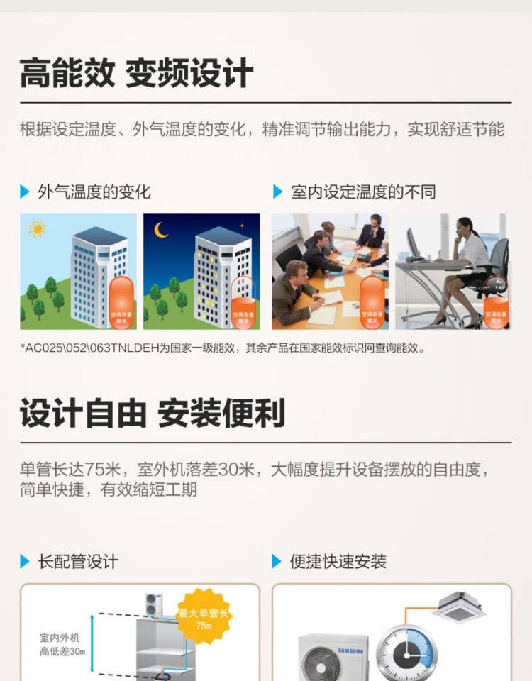Samsung (SAMSUNG) central air conditioner household 3 hp one-to-one inverter living room air conditioner, wind panel, ceiling air conditioner, ultra-thin windless ceiling air conditioner, installation included AC072TN1DEH 3 hp, second level energy efficiency, wind panel (standard remote control)