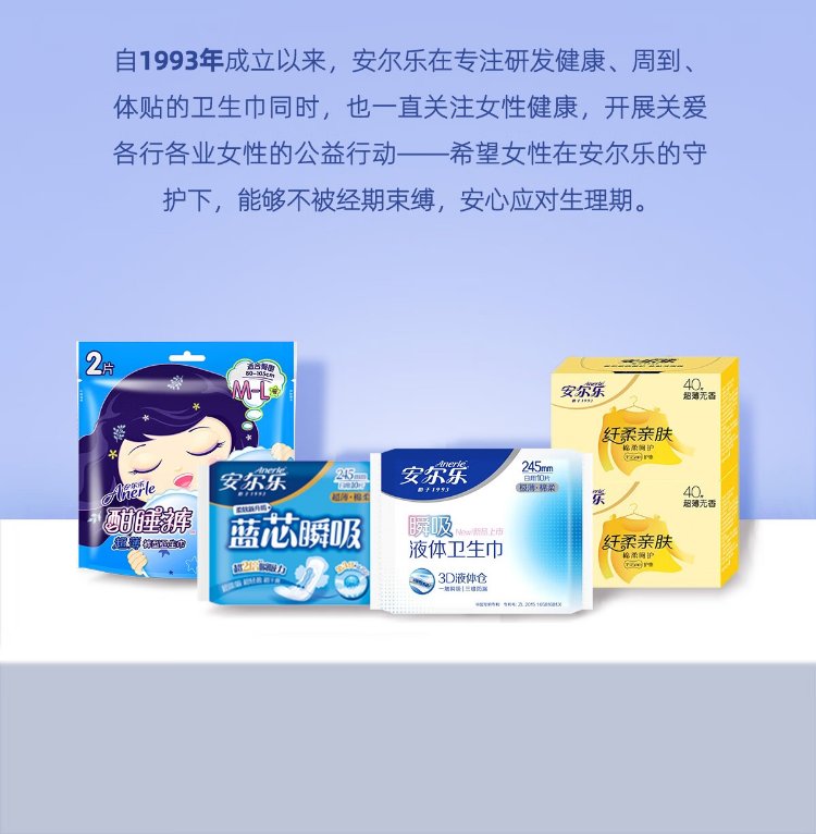 Anerle Slim and skin-friendly ultra-thin cotton soft pads daily pads sanitary napkins wholesale full box store manager recommended 155mm 160 pieces