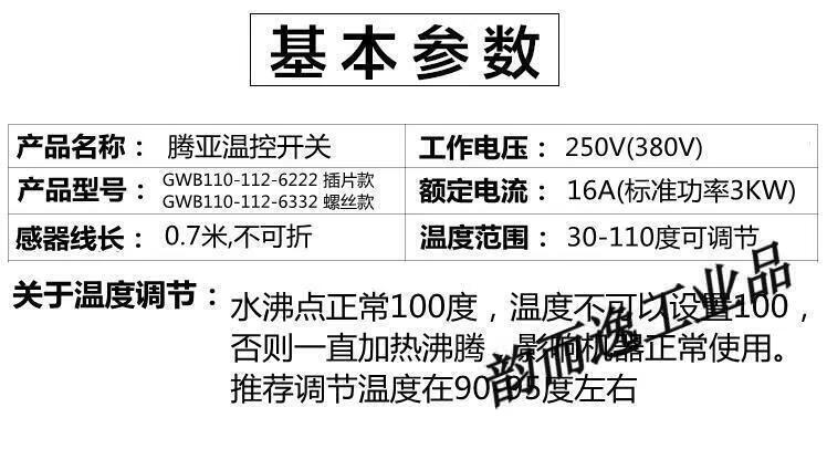 Water boiler thermostat temperature control switch 30-110 degrees WGB110-112-6332 Tenya 30-110 degrees screw interface