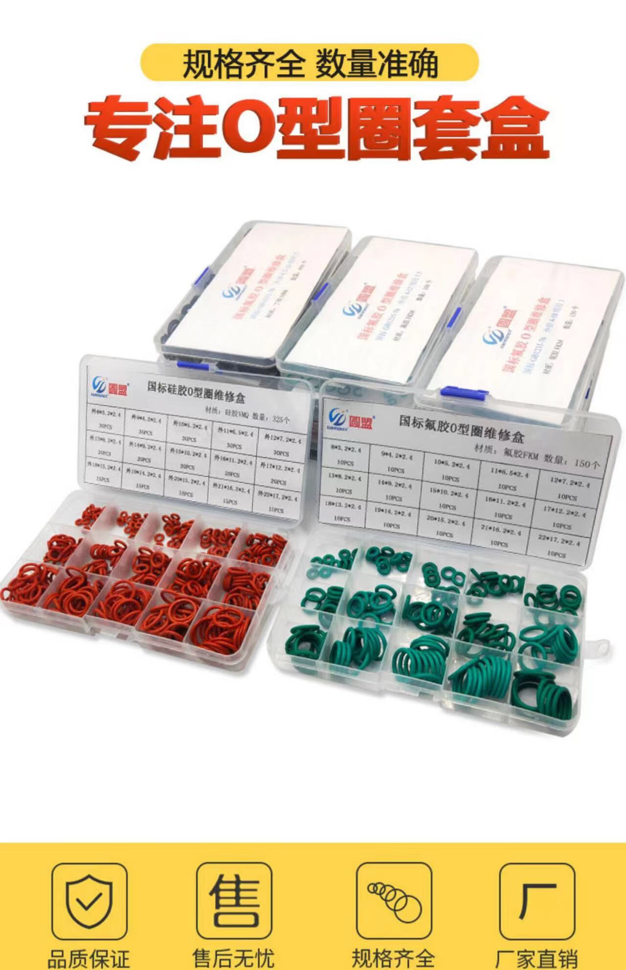 Yuanmeng (XUNMENGR) spot O-ring repair box, high temperature resistant fluorine rubber, oil-resistant nitrile rubber ring, silicone rubber ring, Dingqing O-ring sealing ring, Dingqing universal set box (15 types/200 pieces)