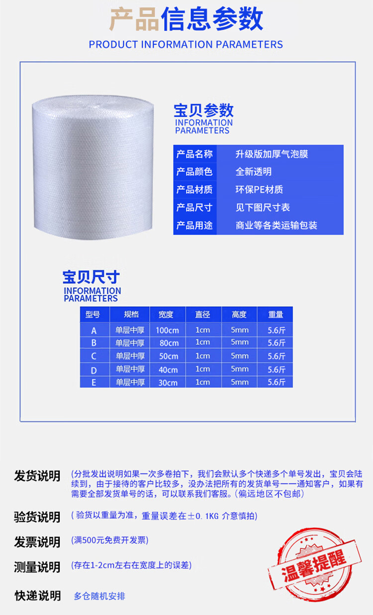 Express packaging bubble film 80 100 120cm wide packing foam thickened shockproof bubble bag bubble paper free shipping single layer 50cm wide medium thick 5.6 kg_120M