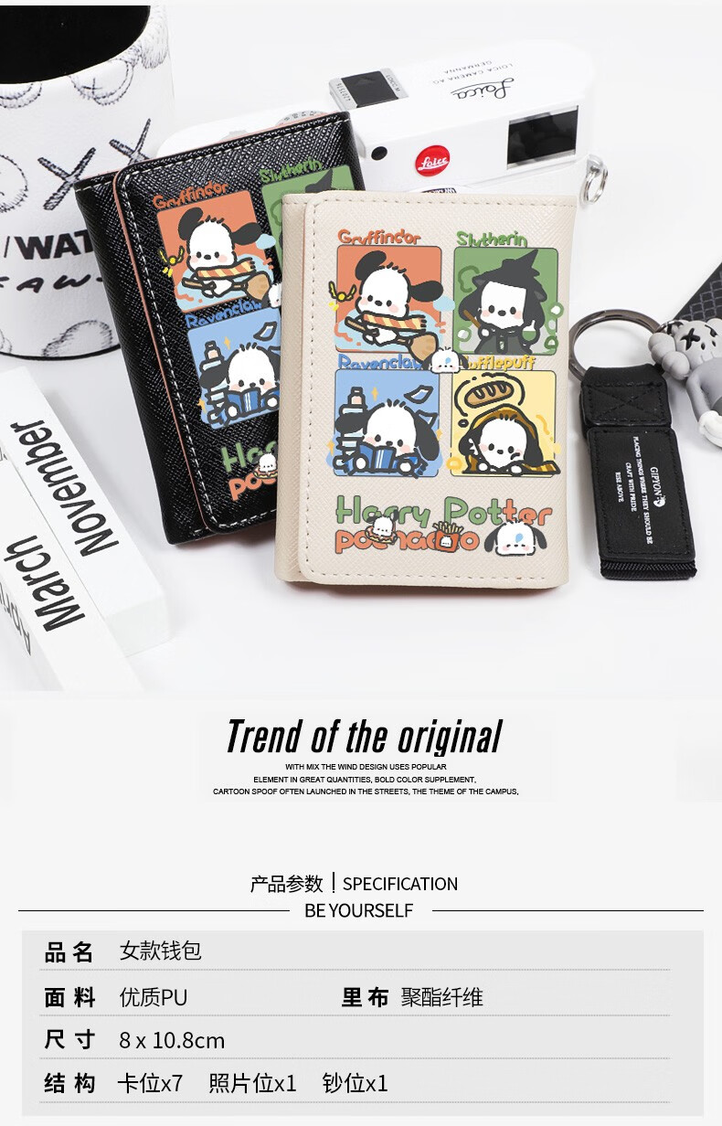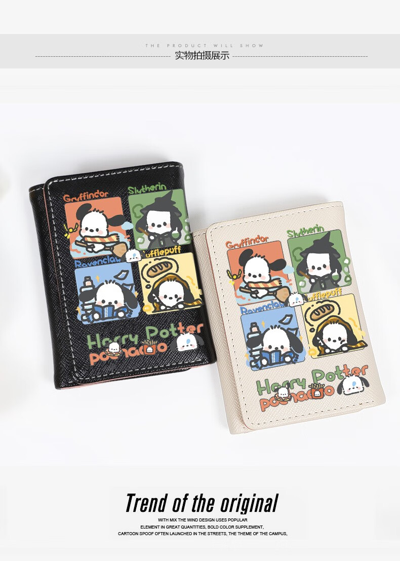 FUROOMO Pacha Dog Collaboration Harry Peripheral Cute Cartoon Student Compact Card Holder Wallet Two-in-One Girls Short Style Niche Beige Pacha Harry 4 Plates