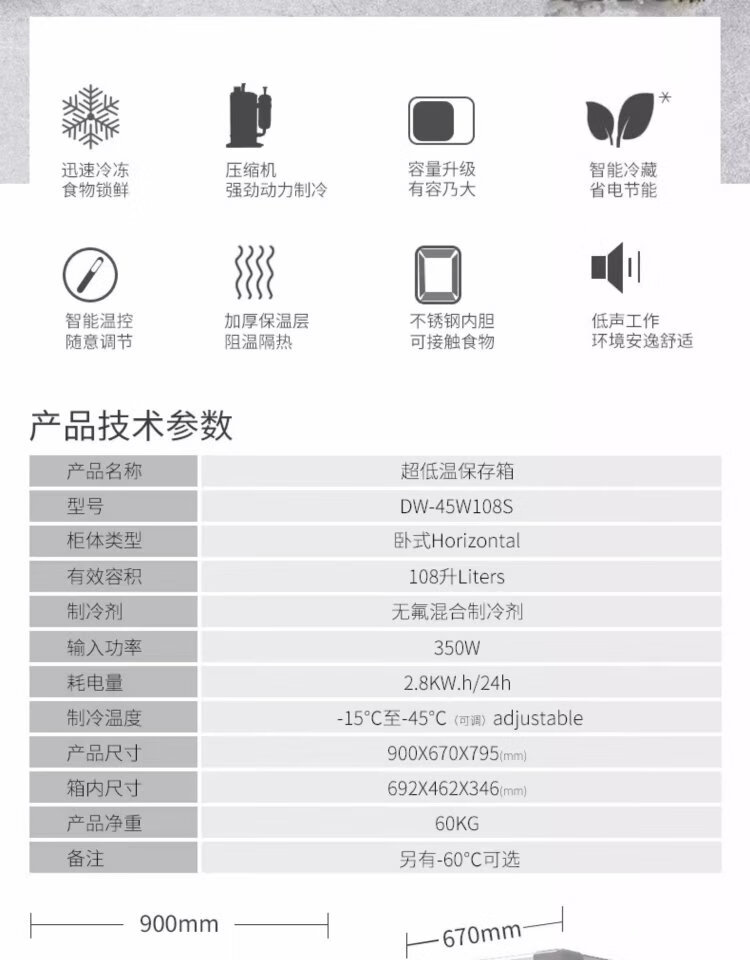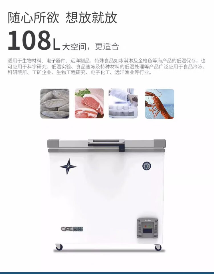 Bingxing minus 40 degree ultra-low temperature freezer commercial minus 15 to -45 degree low temperature refrigerator seafood restaurant Japanese food shop salmon deep-freezing quick-frozen glass door display freezer 158 liters glass door (length 900*width 735*height 855mm)