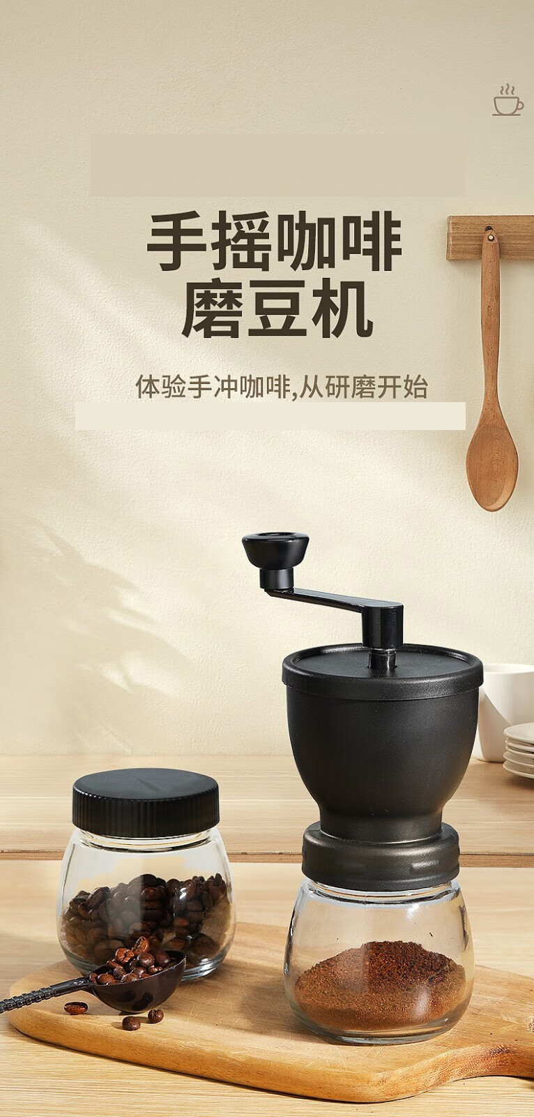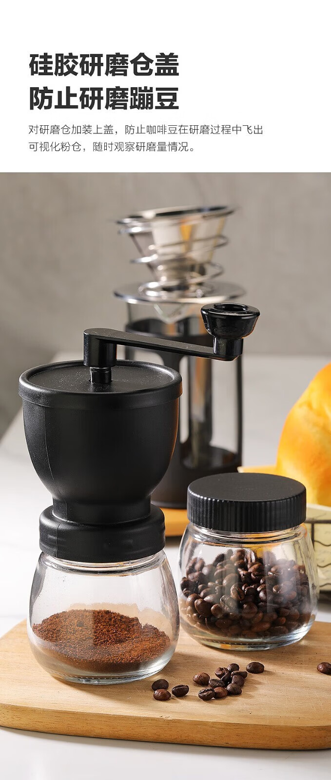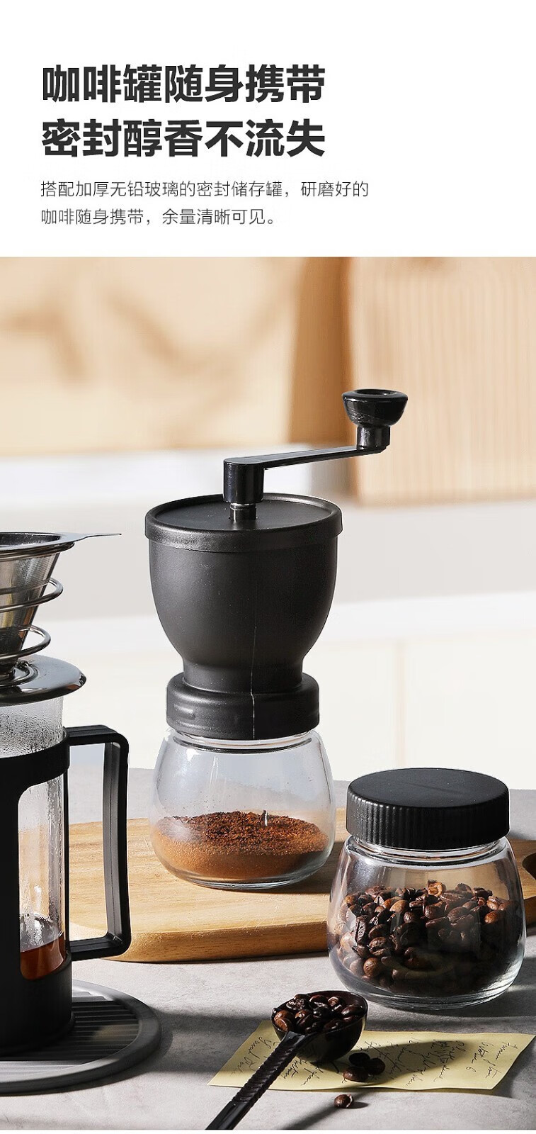 Zhenxiqi hand grinder manual coffee bean grinder hand ground coffee beans household portable multi-function grinder double can black