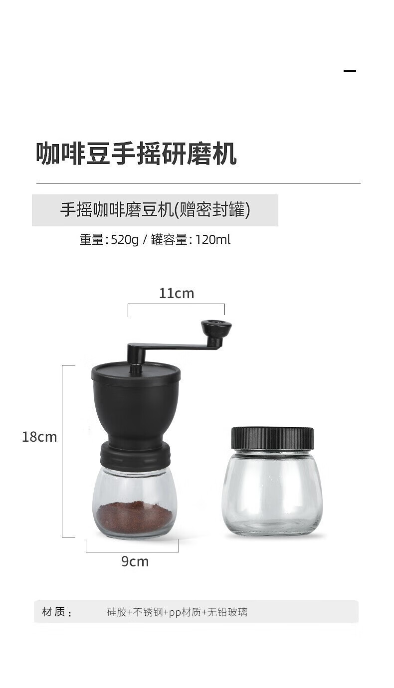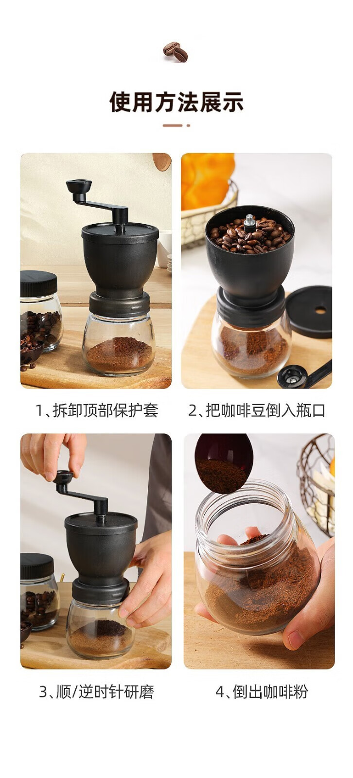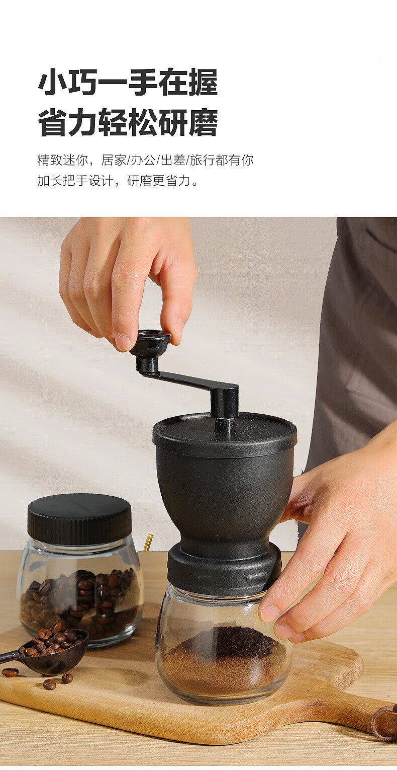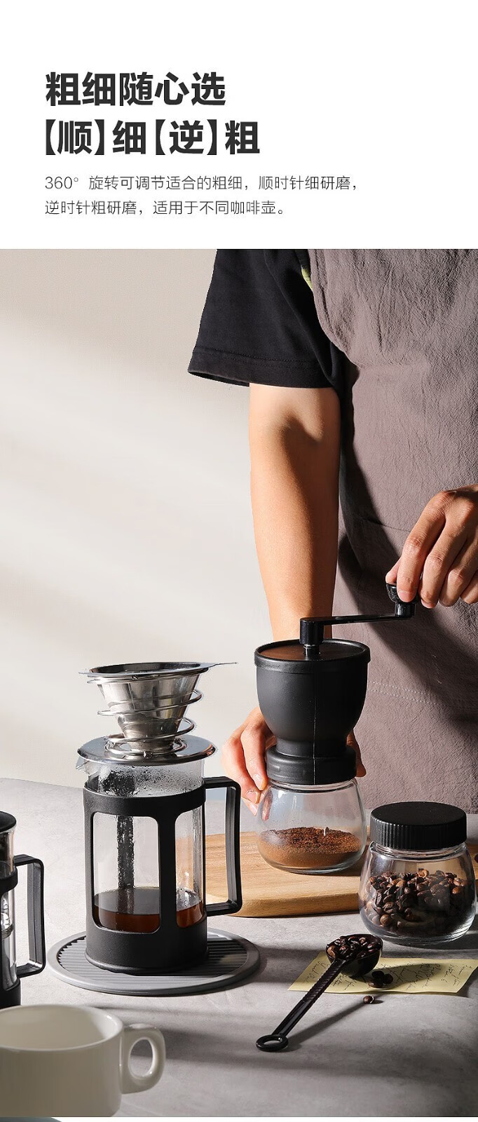 Zhenxiqi hand grinder manual coffee bean grinder hand ground coffee beans household portable multi-function grinder double can black