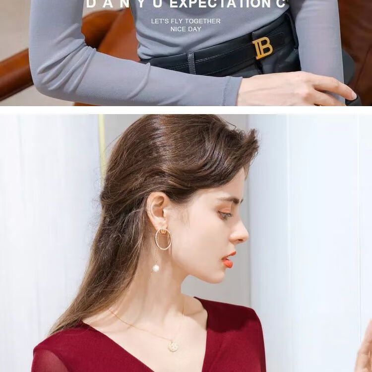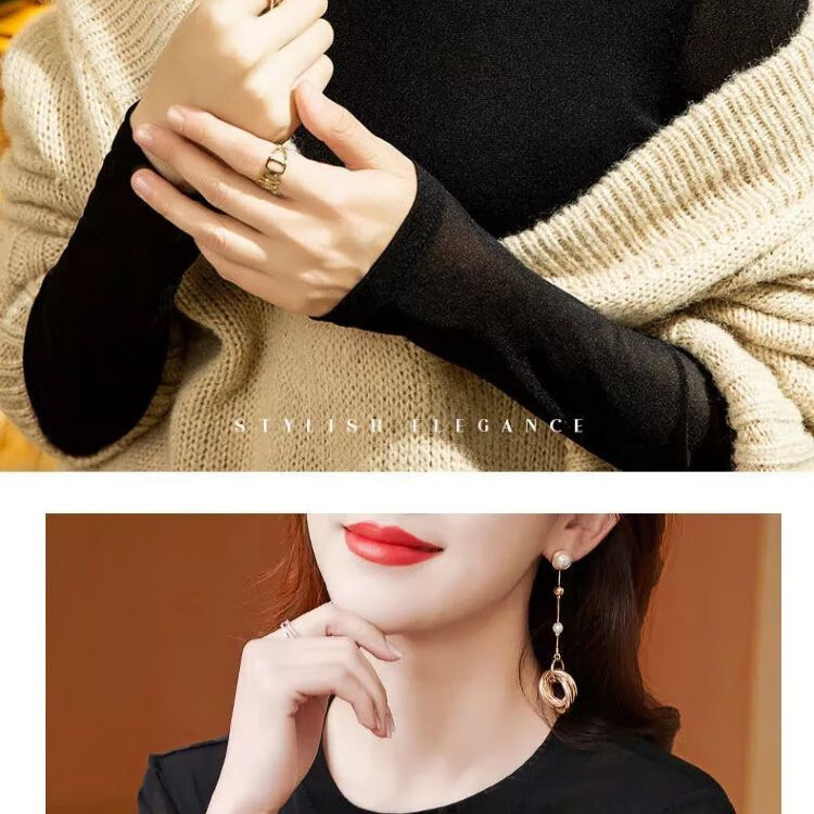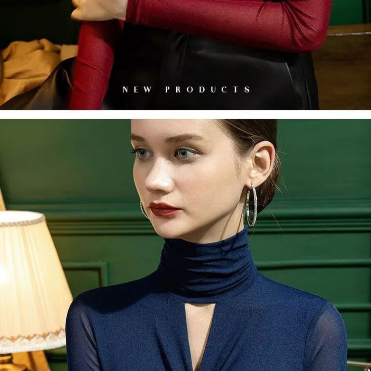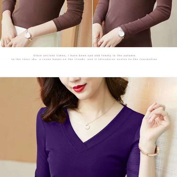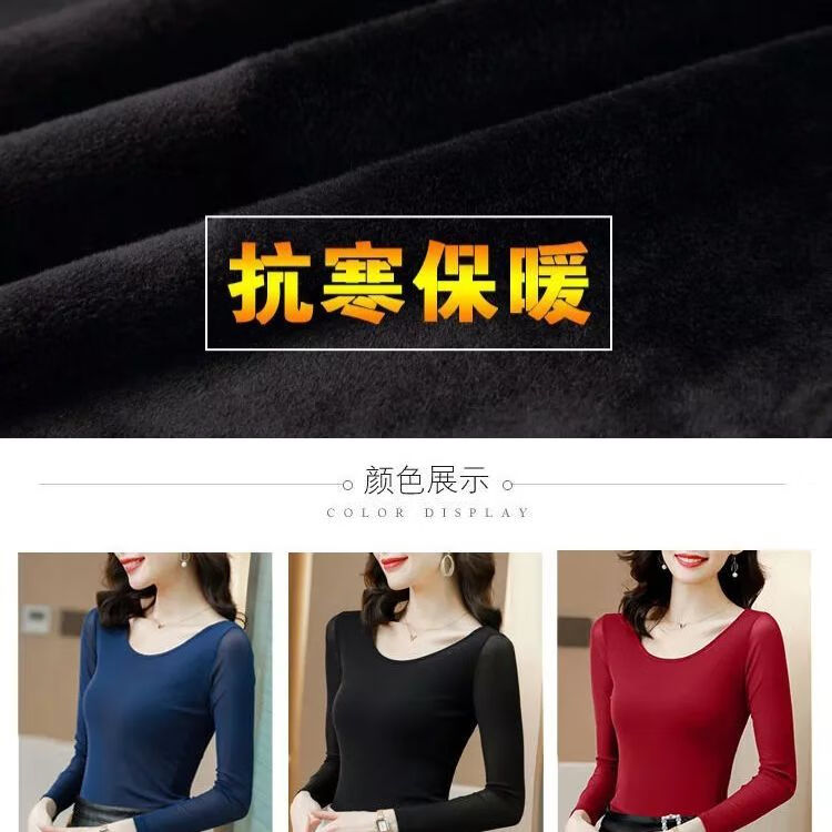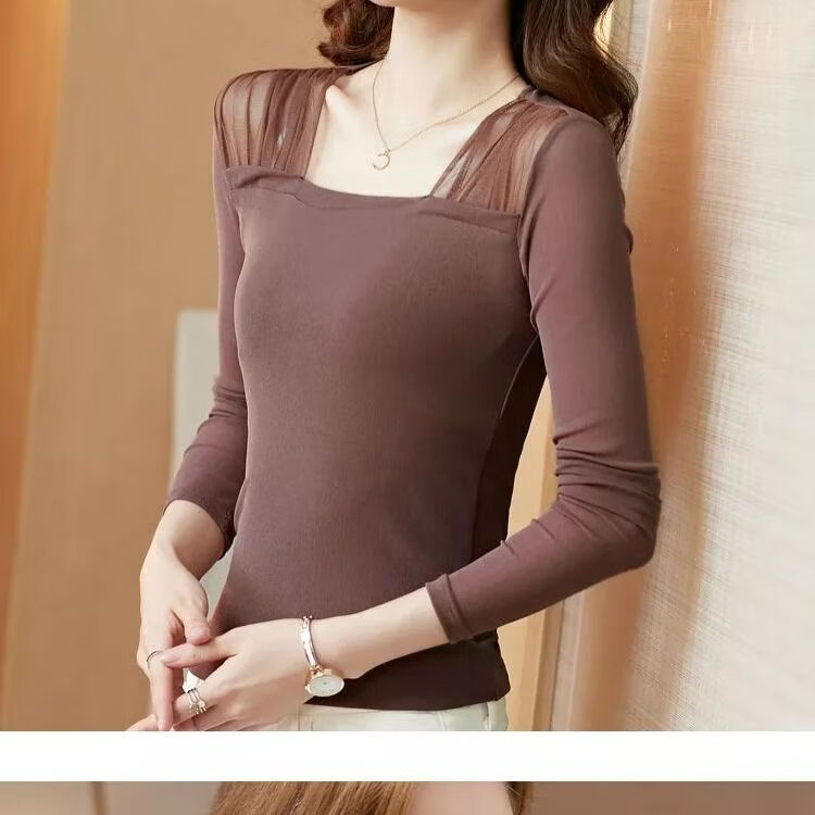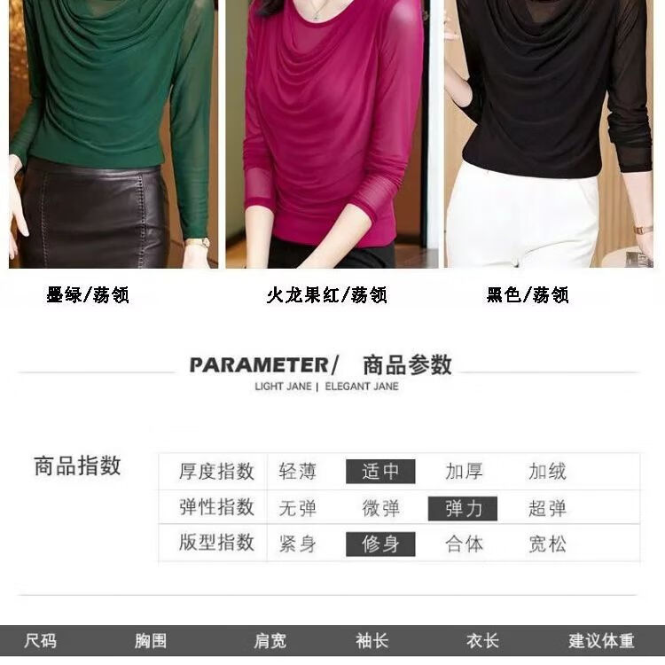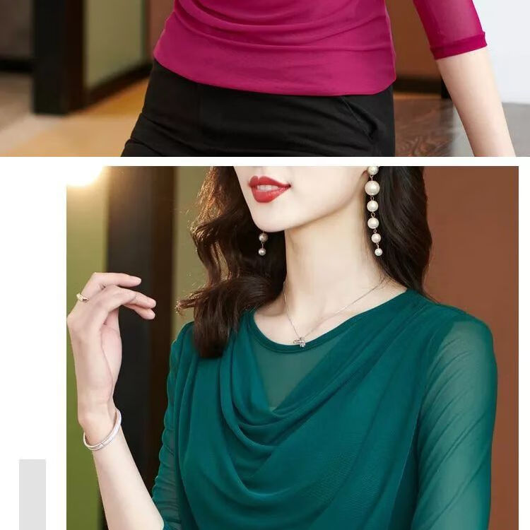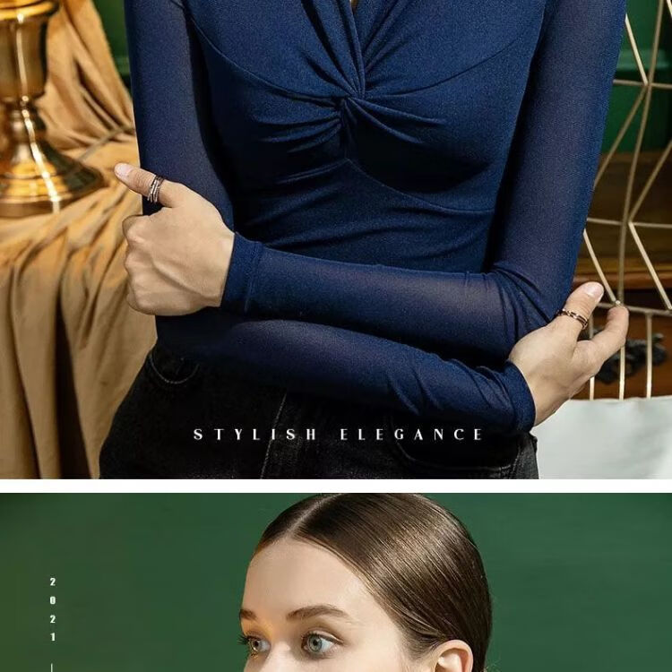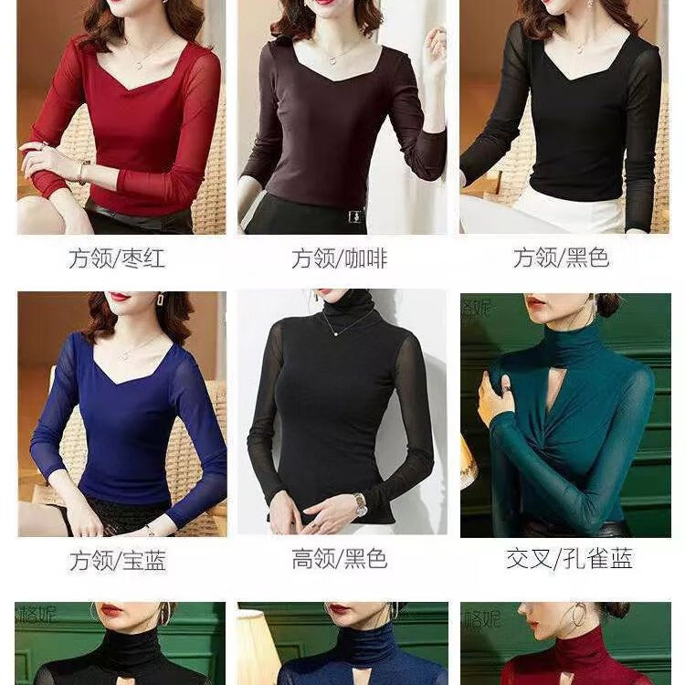 Xinan mesh bottoming shirt with spring and autumn V-neck western style slim top for women new fashion long-sleeved T-shirt for women black round-neck 2XL recommended 125-140 pounds