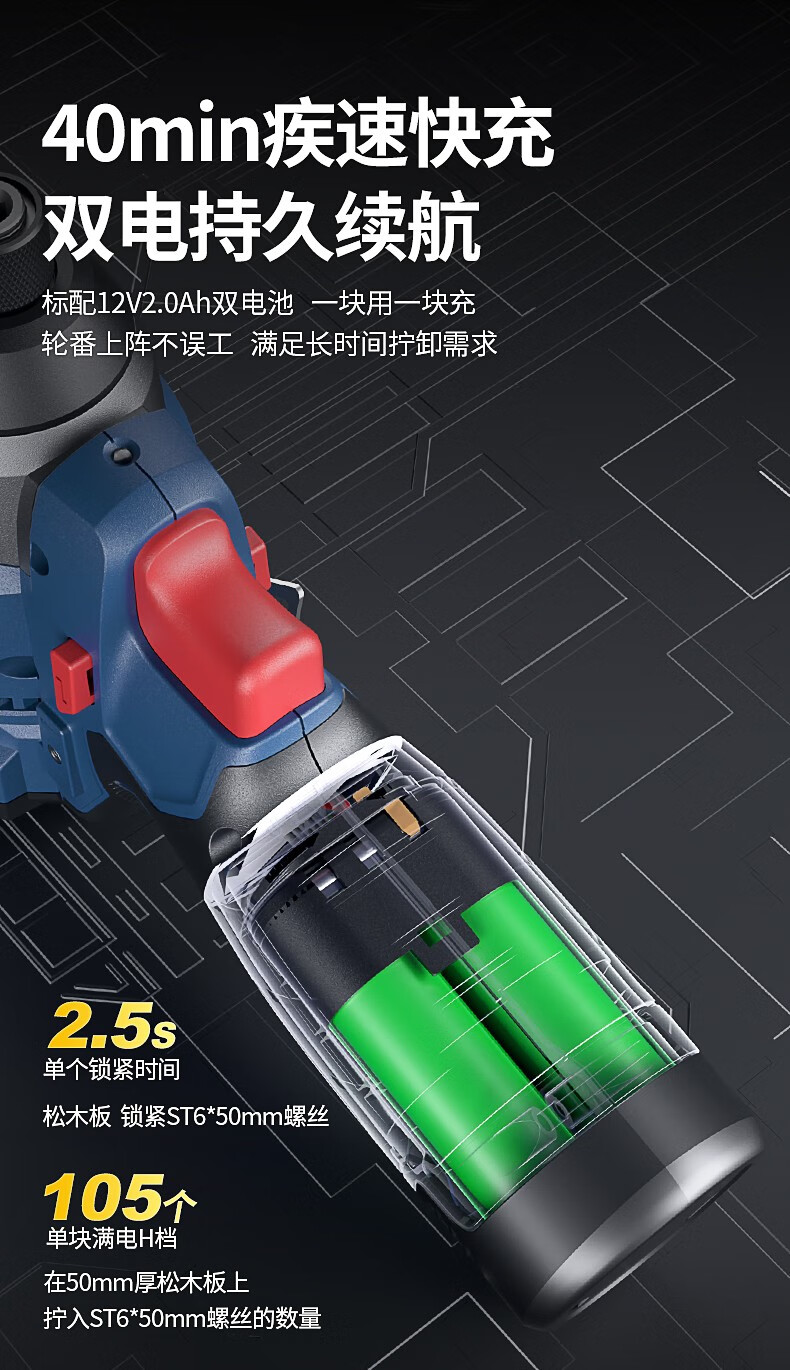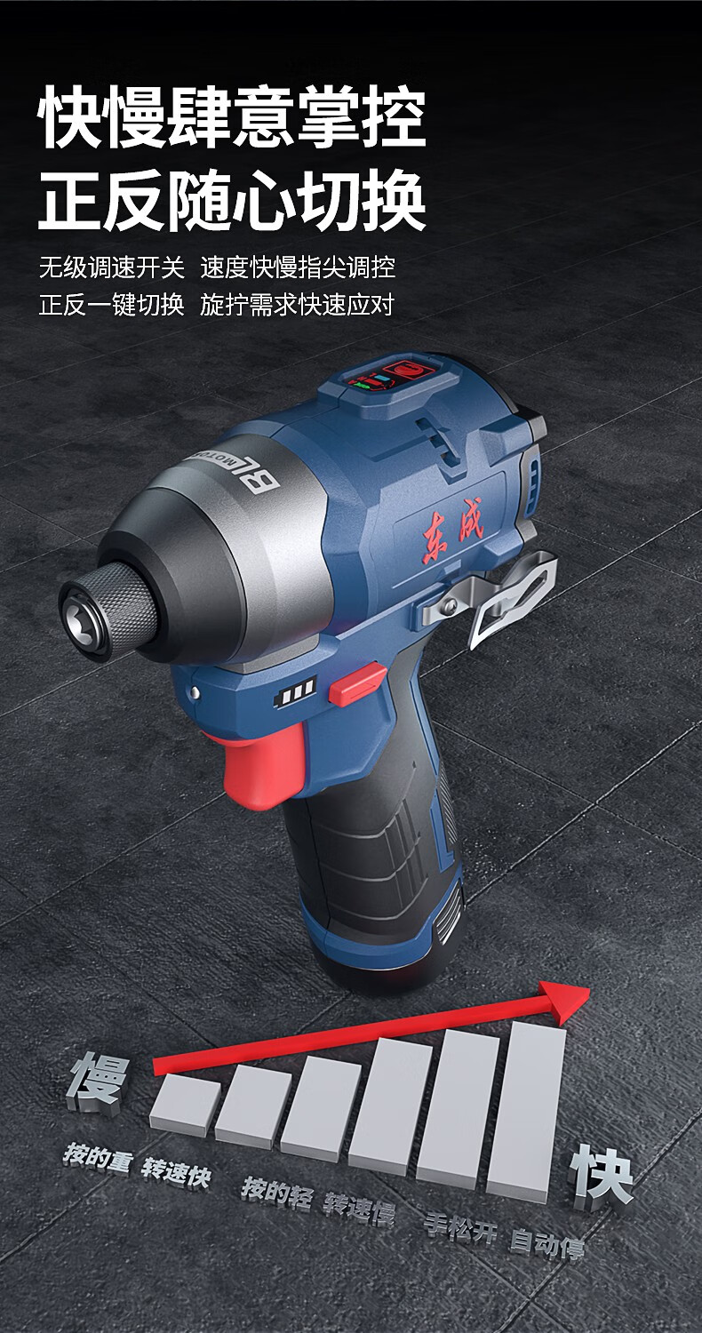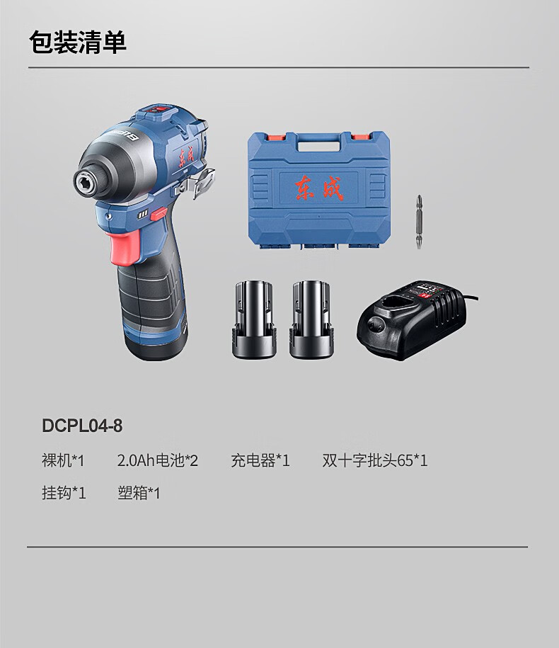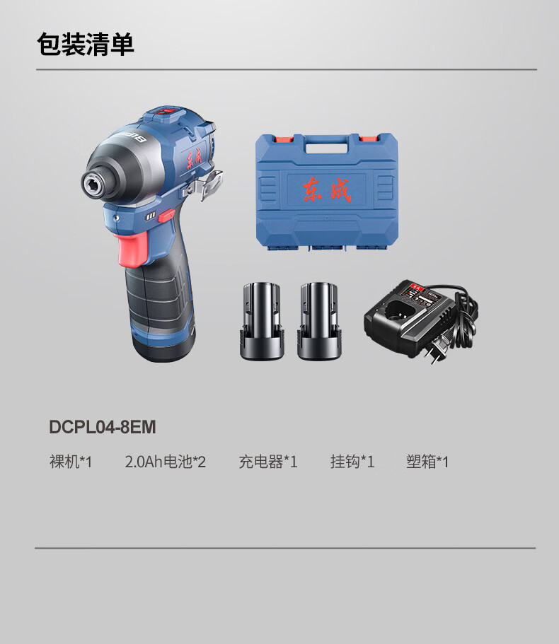 Dongcheng Lithium Battery Screwdriver Rechargeable Brushless Impact Screwdriver High Torque Household Drilling Screws Long-lasting DCPL04-8E 140N 12V Brushless Dual Electric 2.0