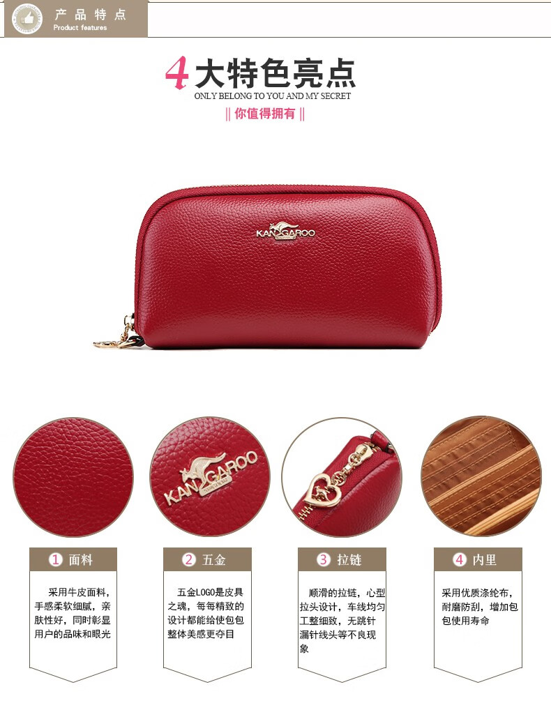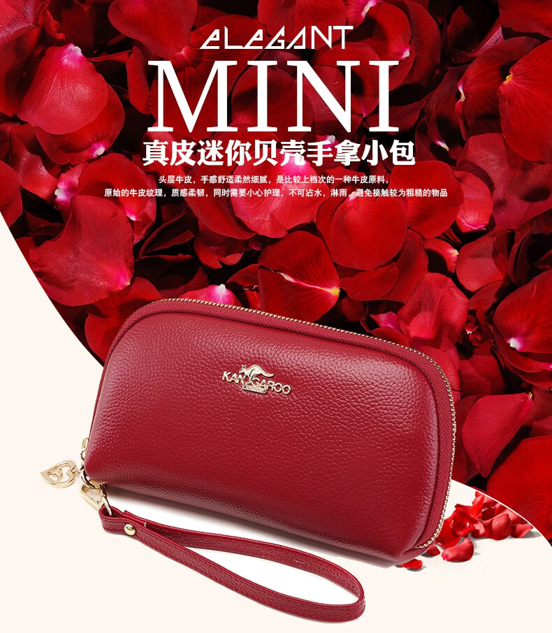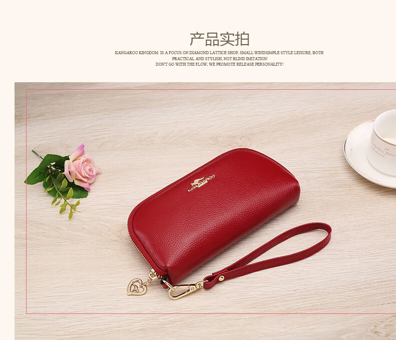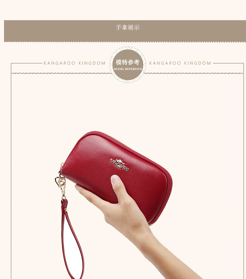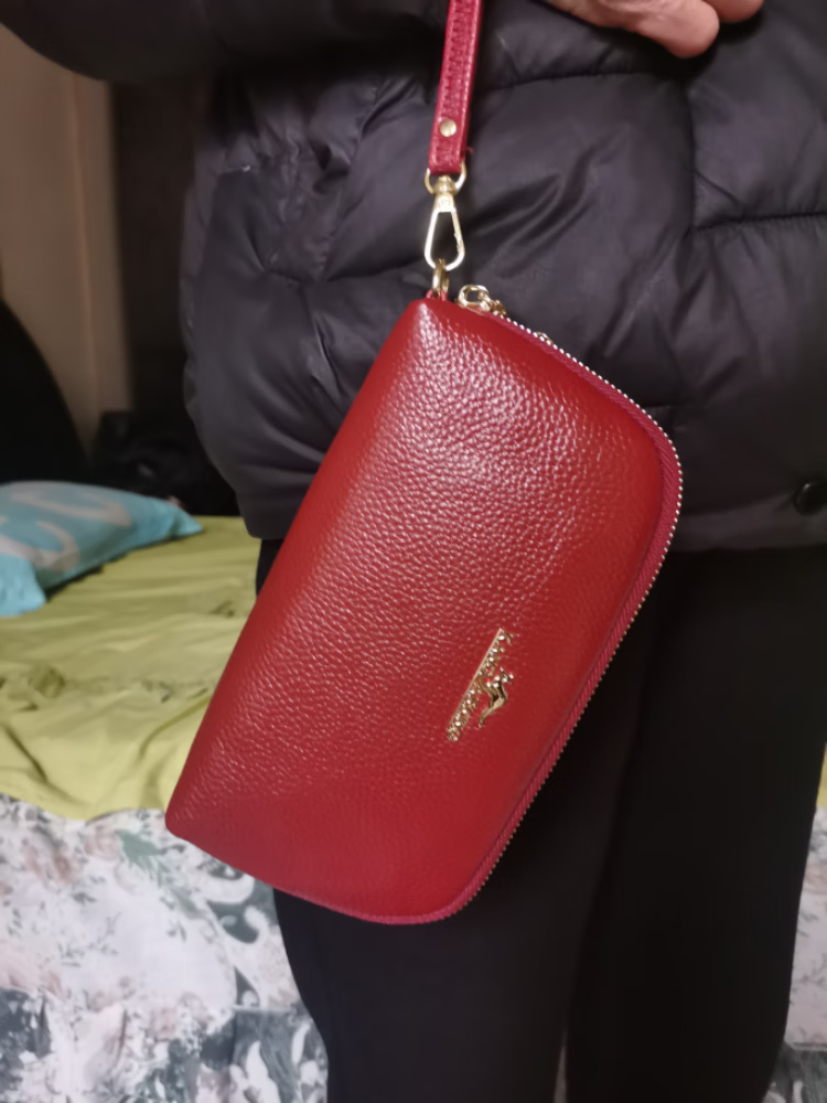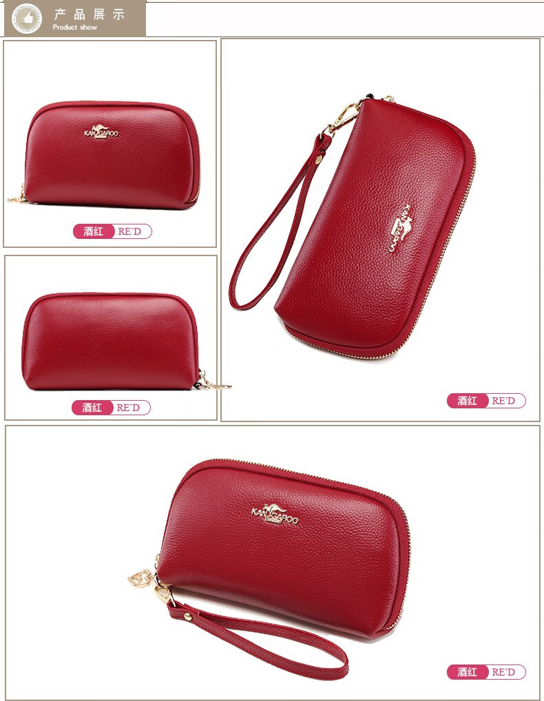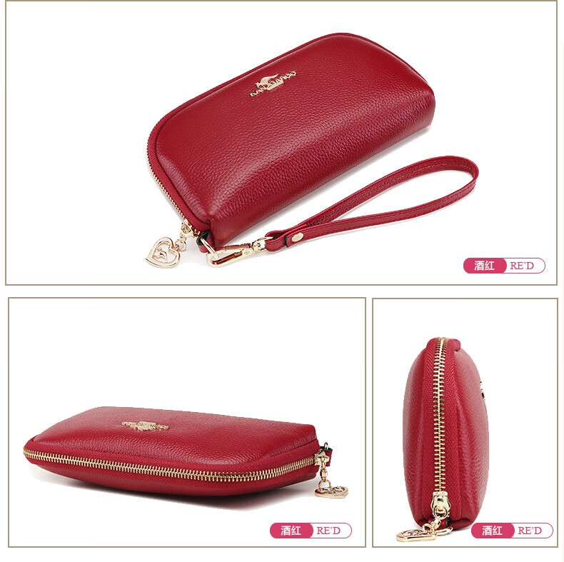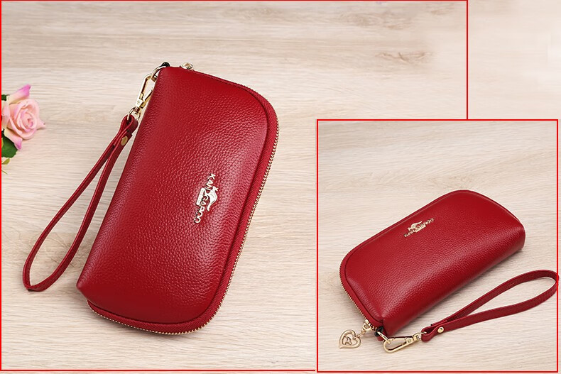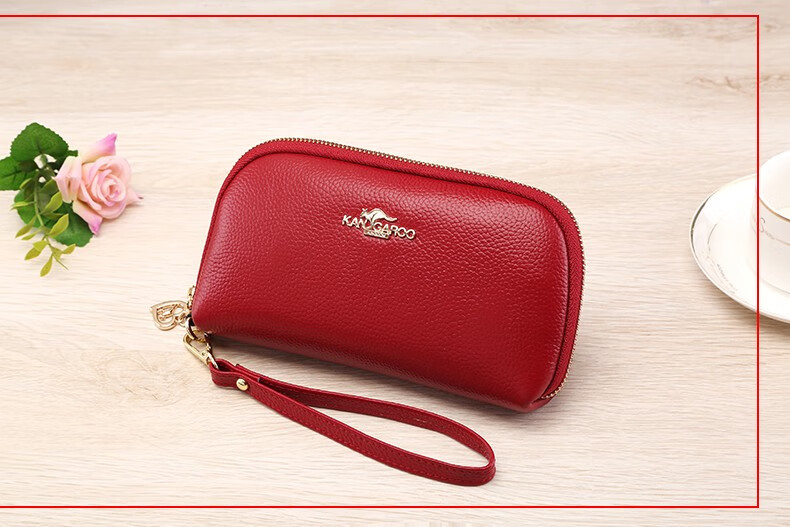 True Australian Kangaroo Wallet Women's Genuine Leather Large Capacity Multi-Card Slot Clutch Women's Handbag First Layer Cowhide Soft Leather Small Bag Women's Handbag Burgundy