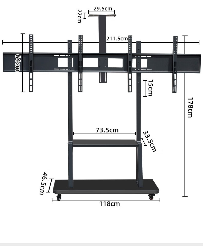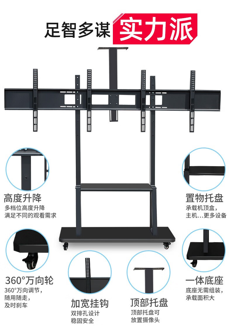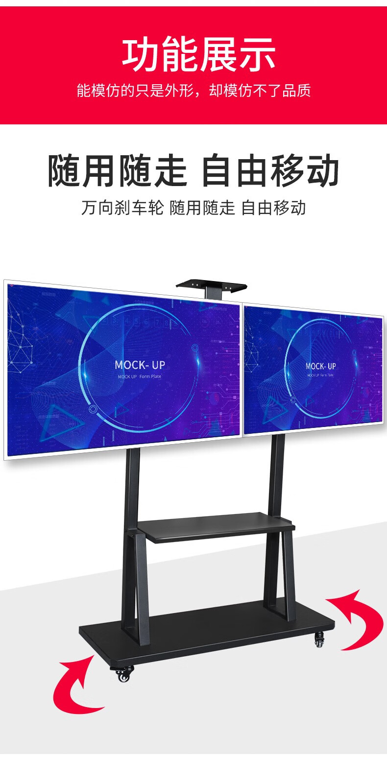Yunjia TV mobile bracket 2/3/4 screen TV floor hanging bracket 32-43-55-65-75 inches universal left and right dual screen three or four screen splicing TV cart 32-65 inches left and right dual screens