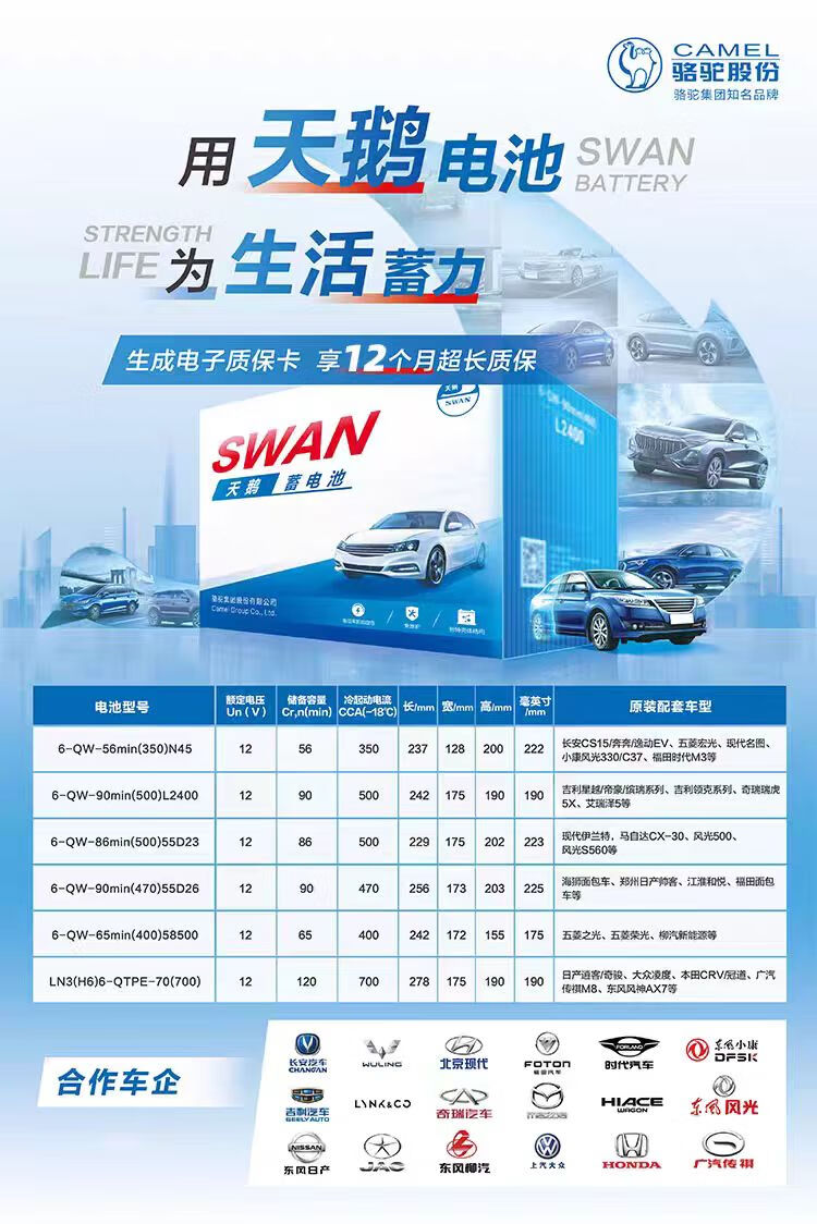 Camel Swan DF battery 12V car battery 45/55/60/70AH/L2400/55D23L/80D26 60AH Hyundai Langdong Mingtu Yuedong IX35 Elantra