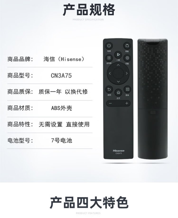 Hisense original Hisense TV remote control infrared model without voice function 55E3G 65E3G