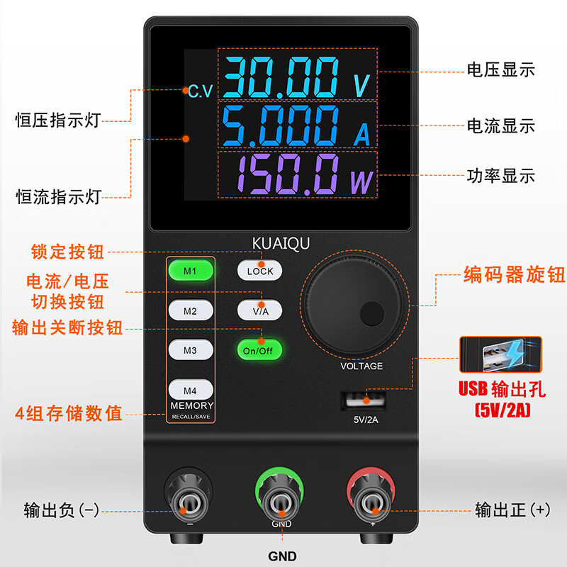 KUAIQU high-power high-voltage programmable DC power supply program-controlled communication regulated power supply RS232 computer-controlled power supply program-controlled model SPPS305D-232 30V 5A