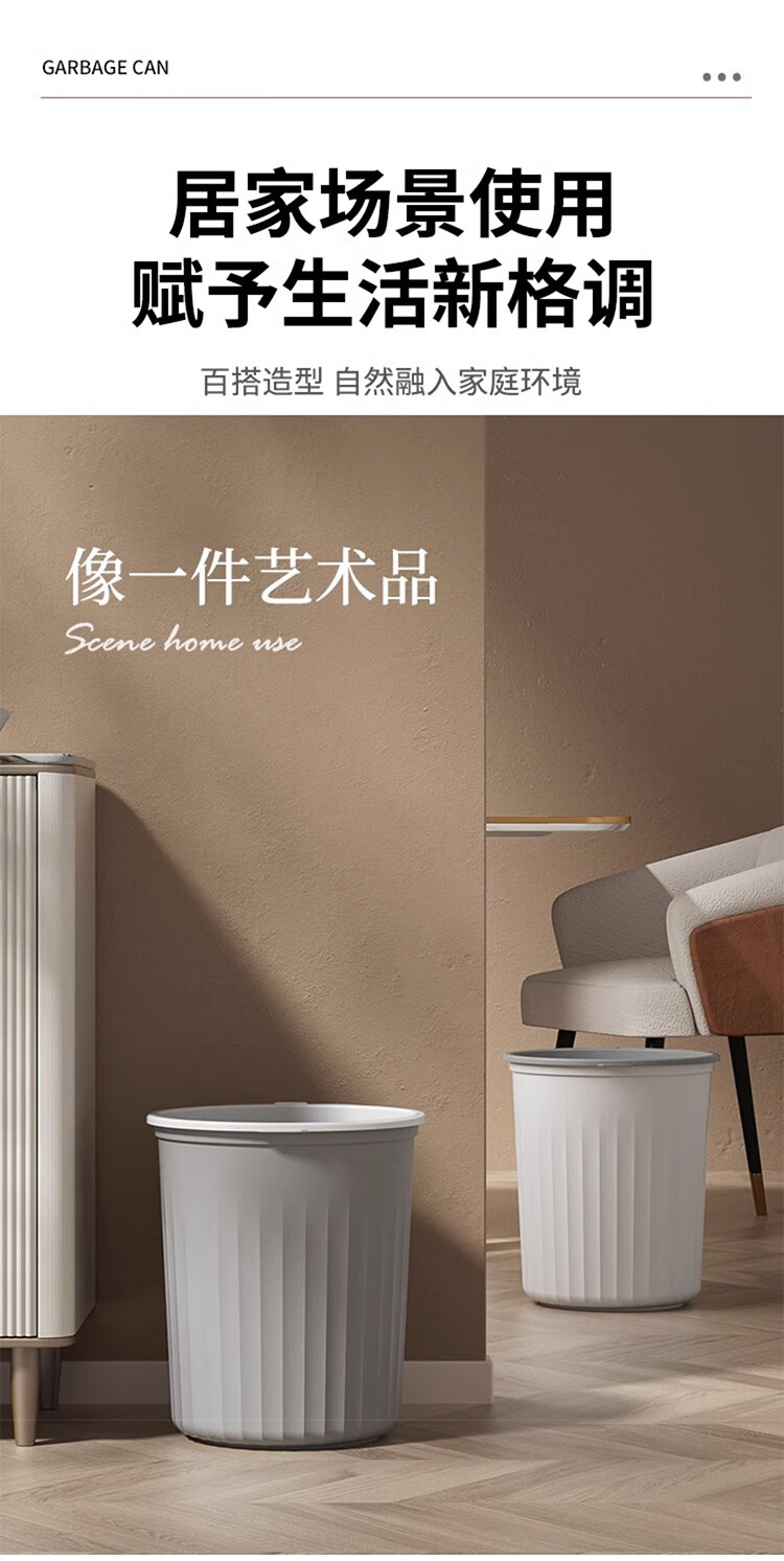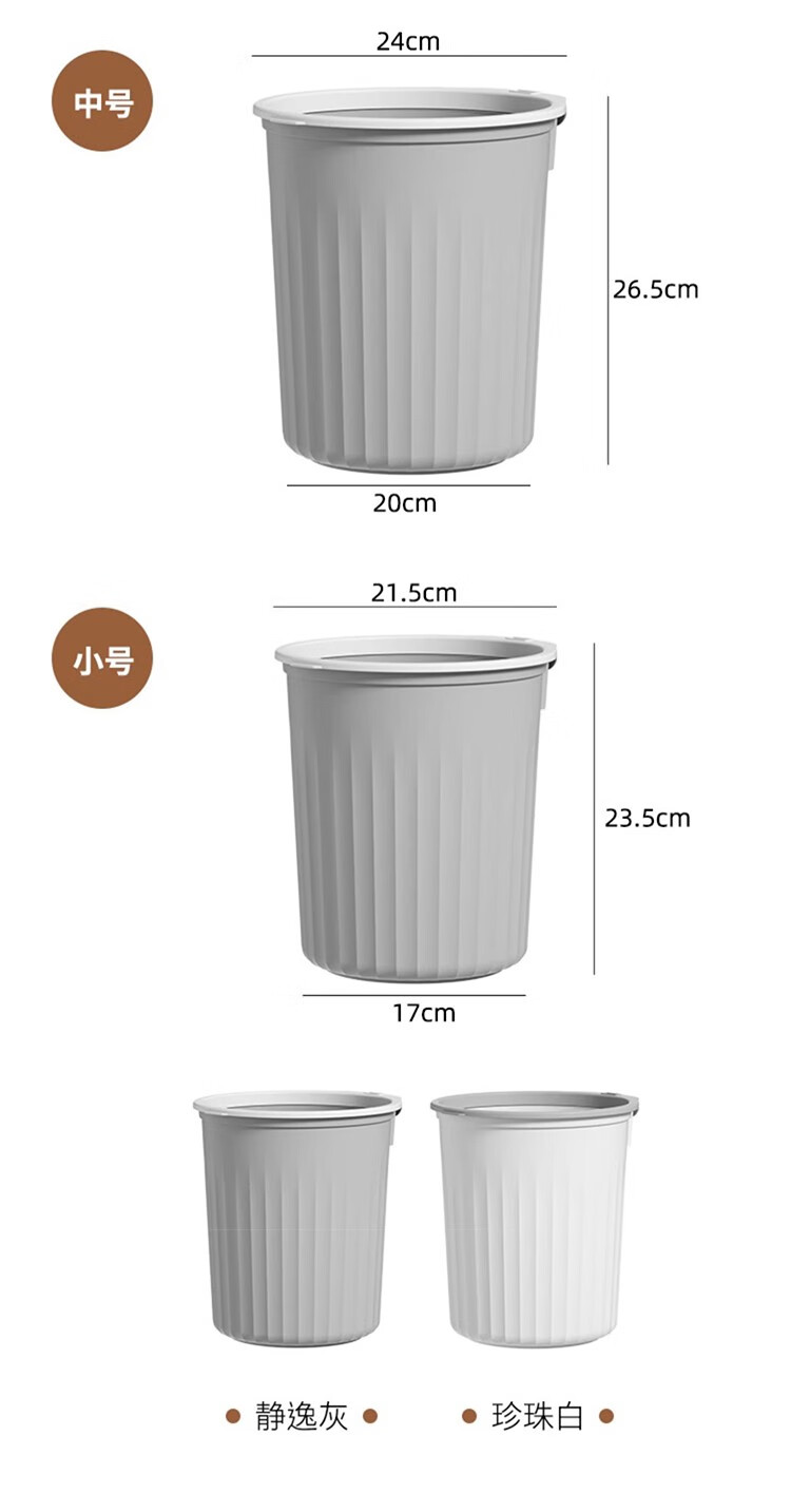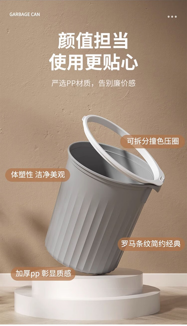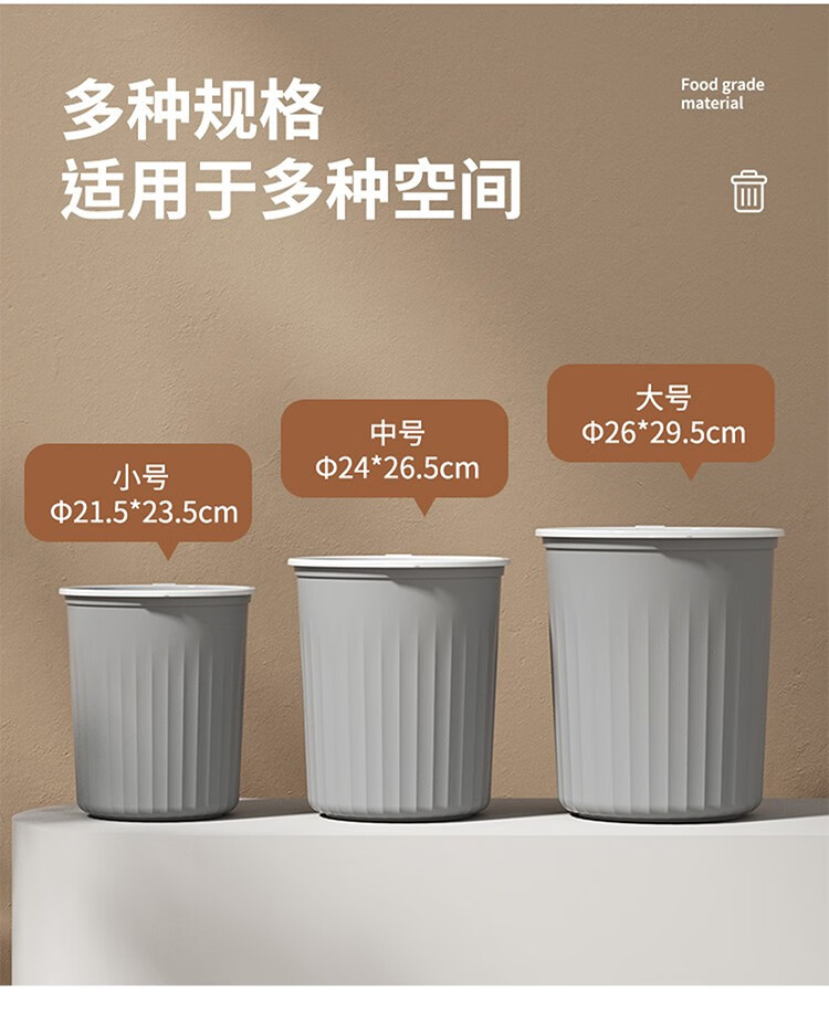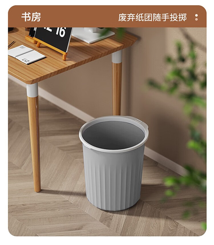 Mudong trash can household large capacity living room toilet bathroom bedroom kitchen office with pressure ring desktop paper basket Jingyi gray large single pack 16L