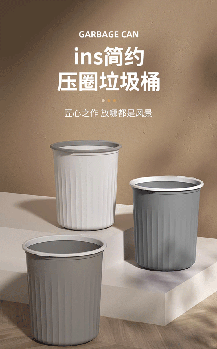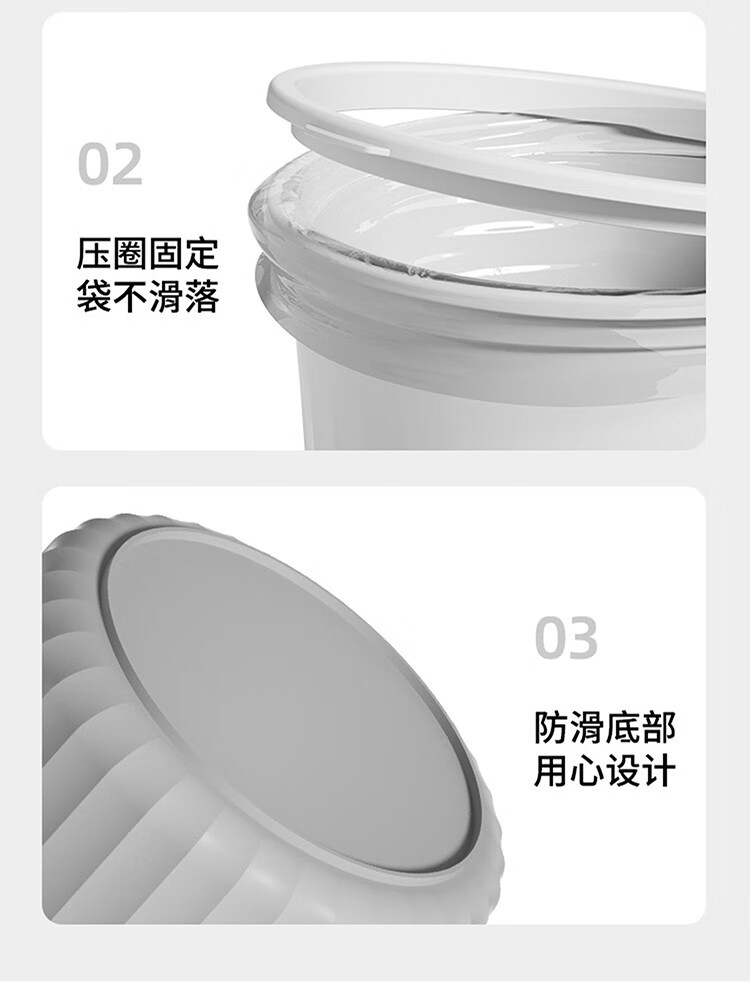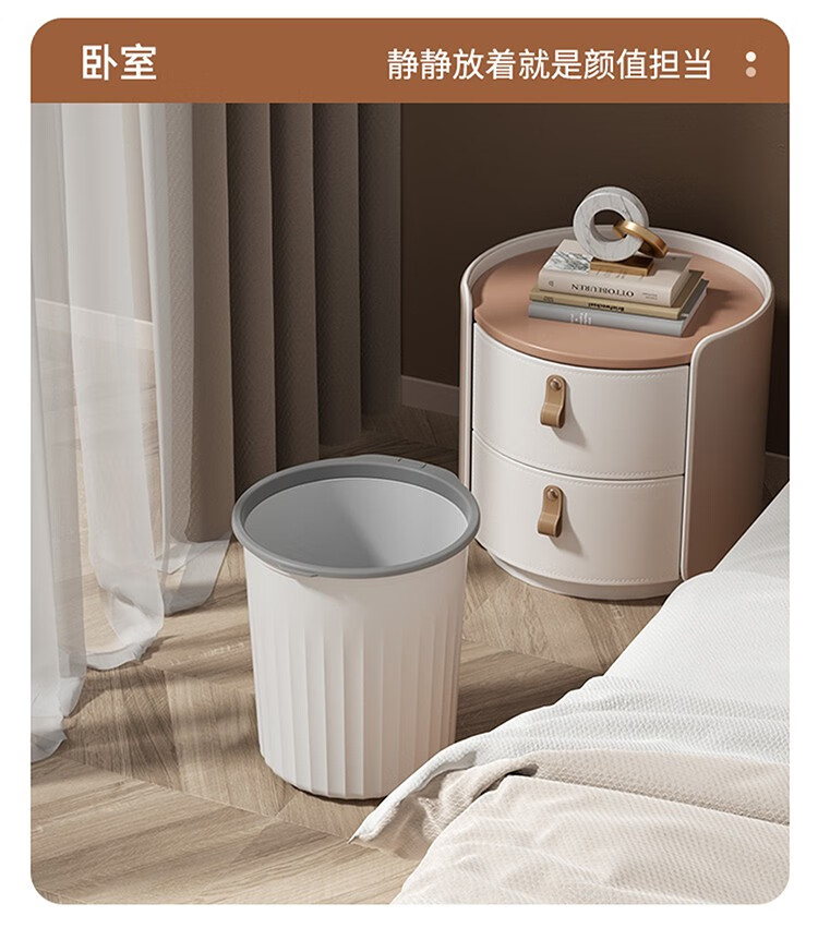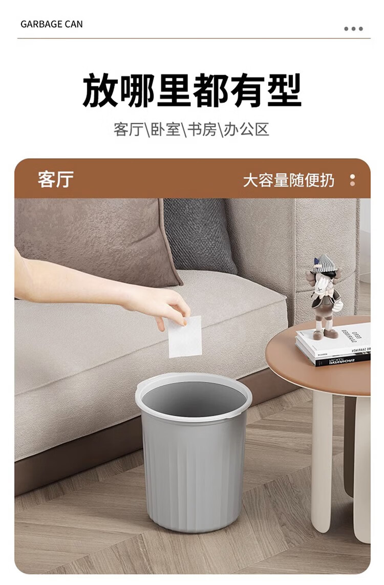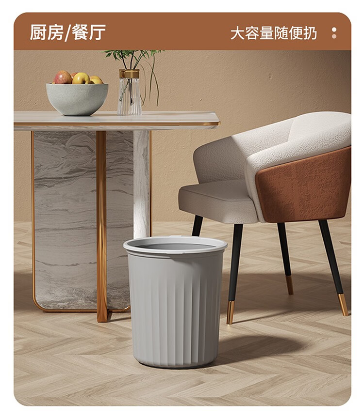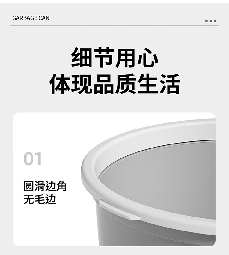 Mudong trash can household large capacity living room toilet bathroom bedroom kitchen office with pressure ring desktop paper basket Jingyi gray large single pack 16L