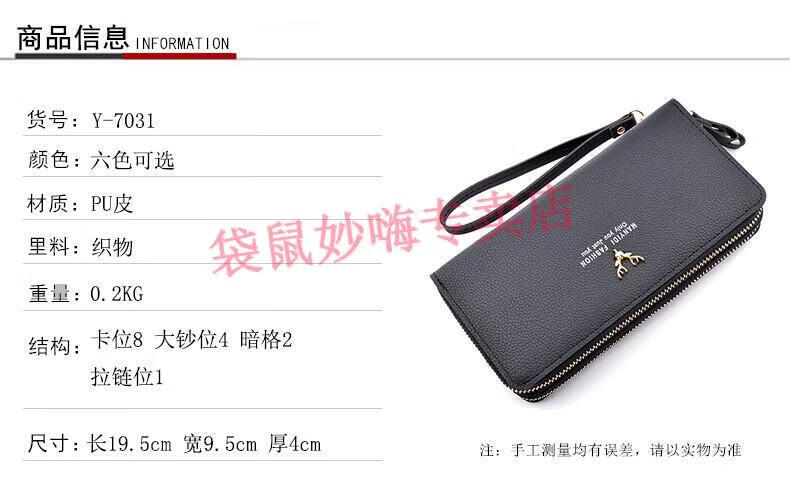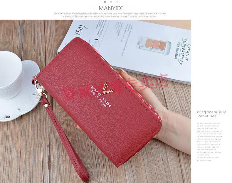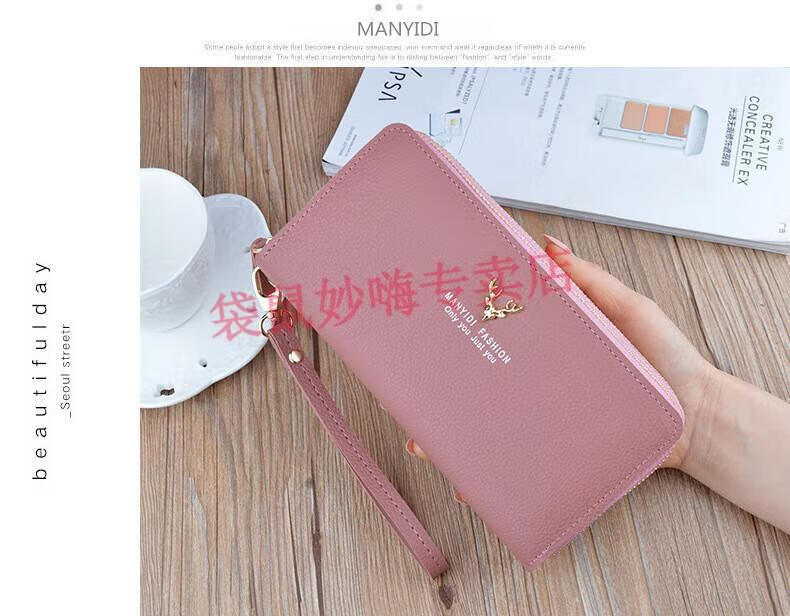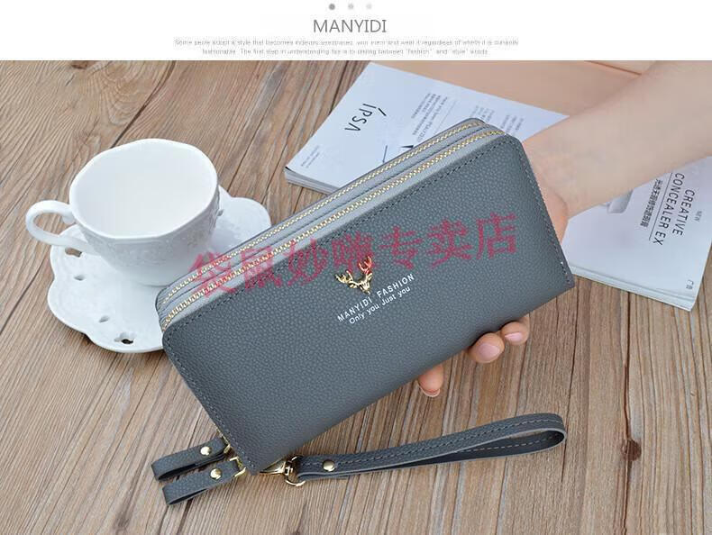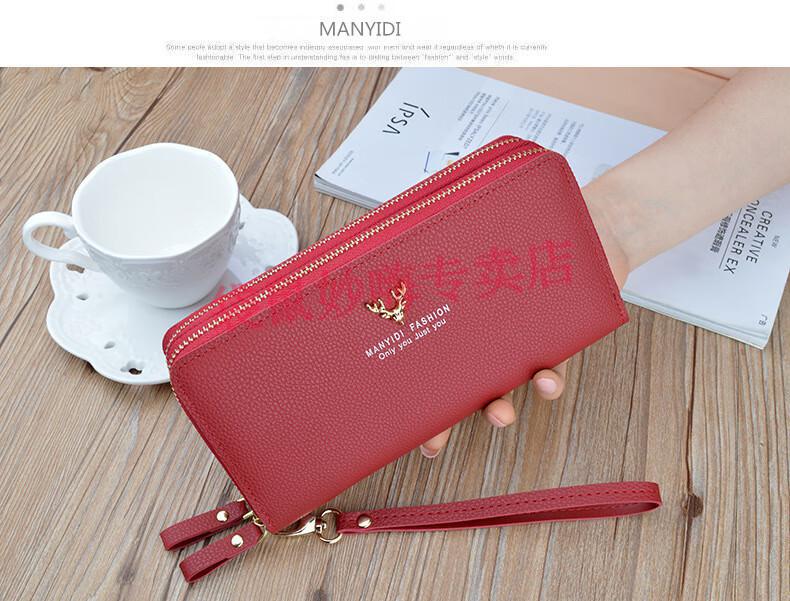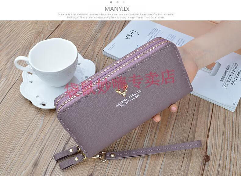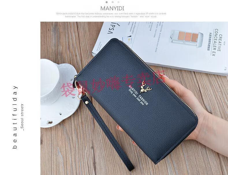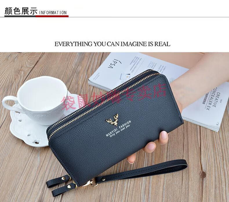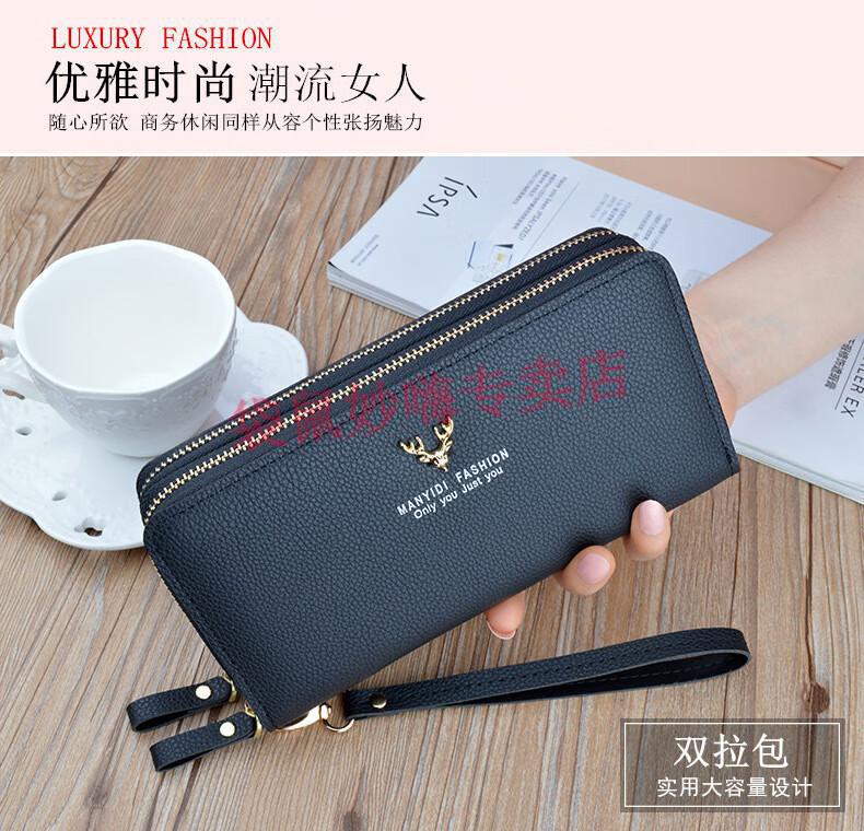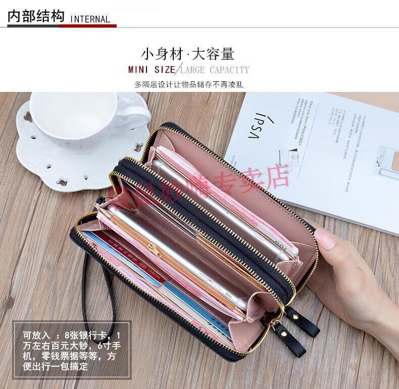 Kangaroo (KANGAROO) New Wallet Women's Long Clutch Double Zipper Wallet Mobile Phone Bag Fashion Simple Large Capacity Double Layer Wallet Black