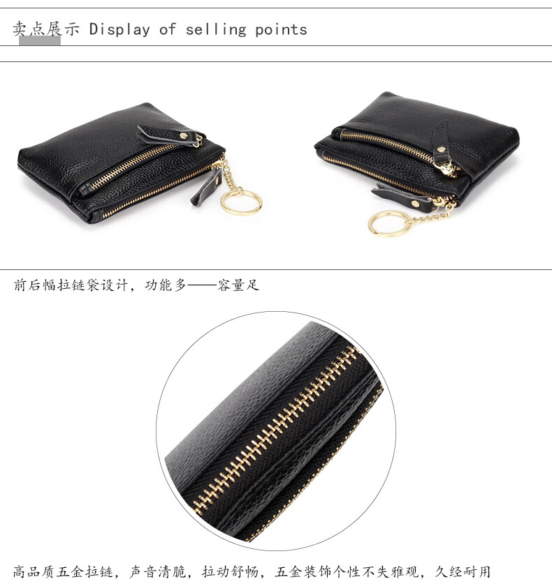 MZXM Germany imported quality genuine leather coin purse women's small mini cowhide mother's zipper key thin small wallet black