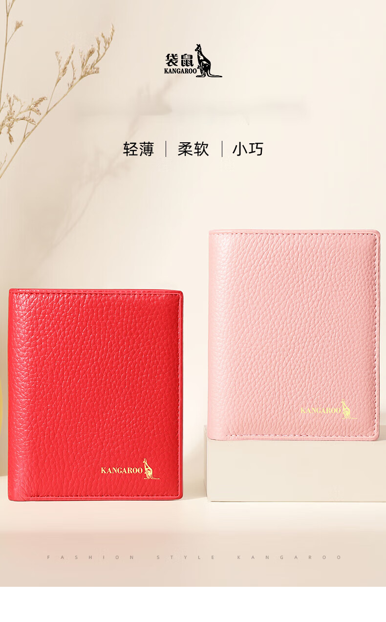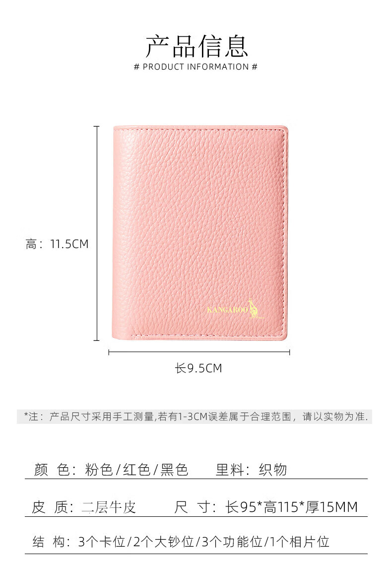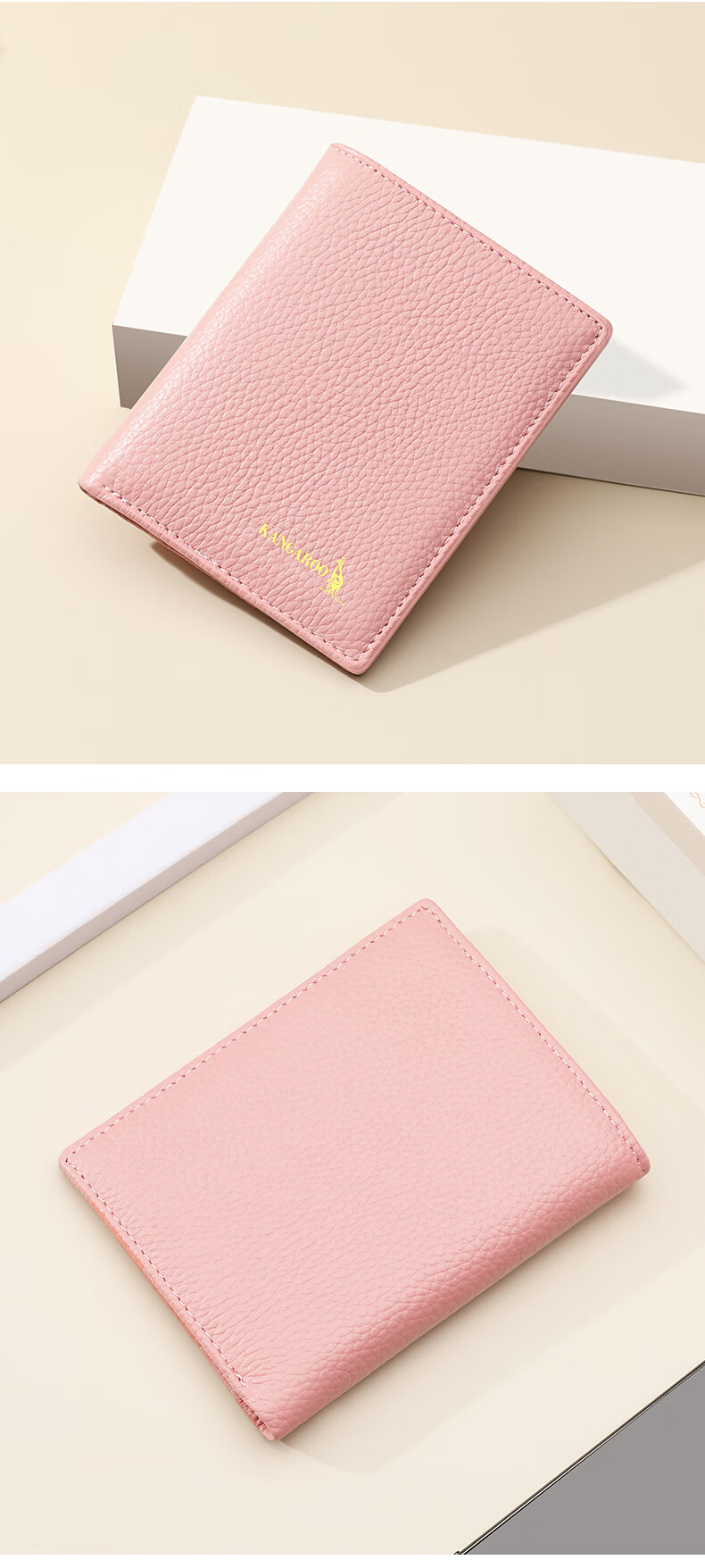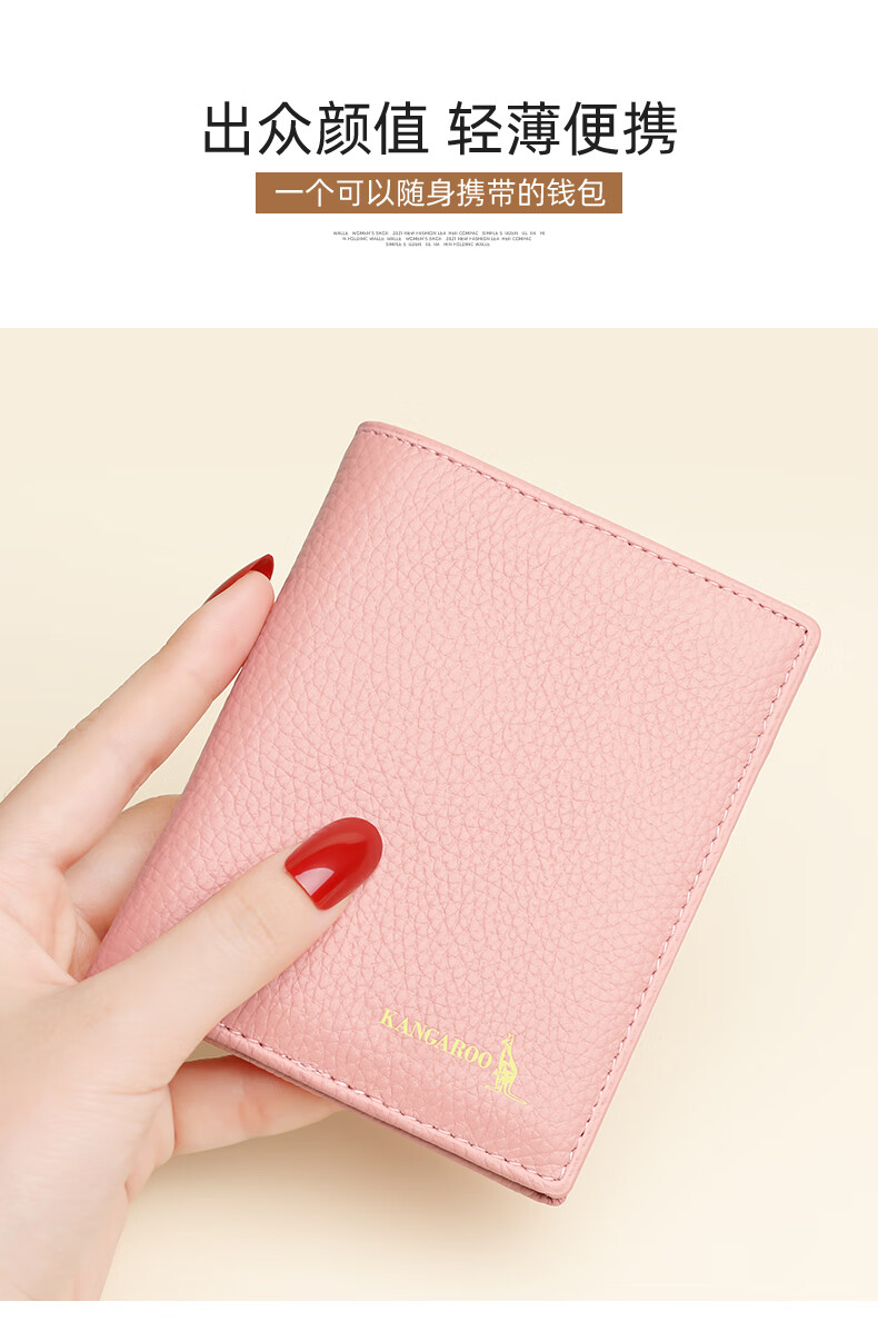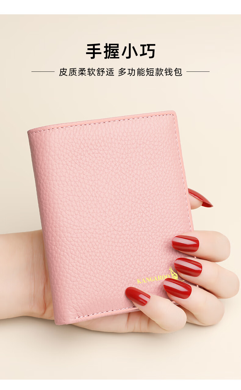 Kangaroo Wallet Women's Card Holder Driver's License Compact Bank Card Case ID Card Holder Large Capacity Cowhide Multi-Card Slot Bag Pink