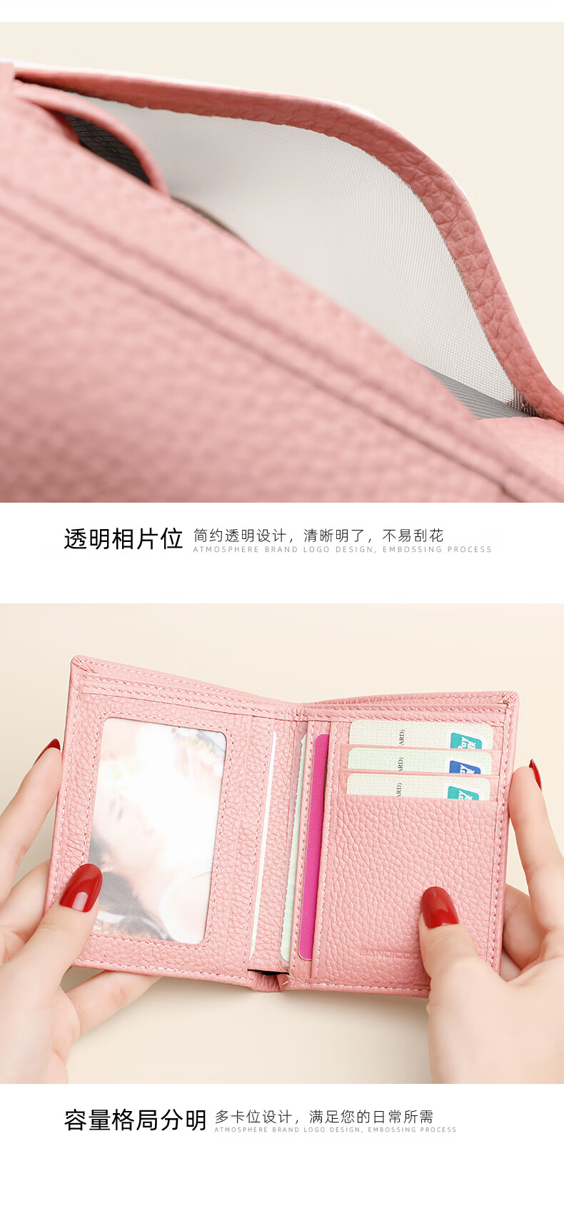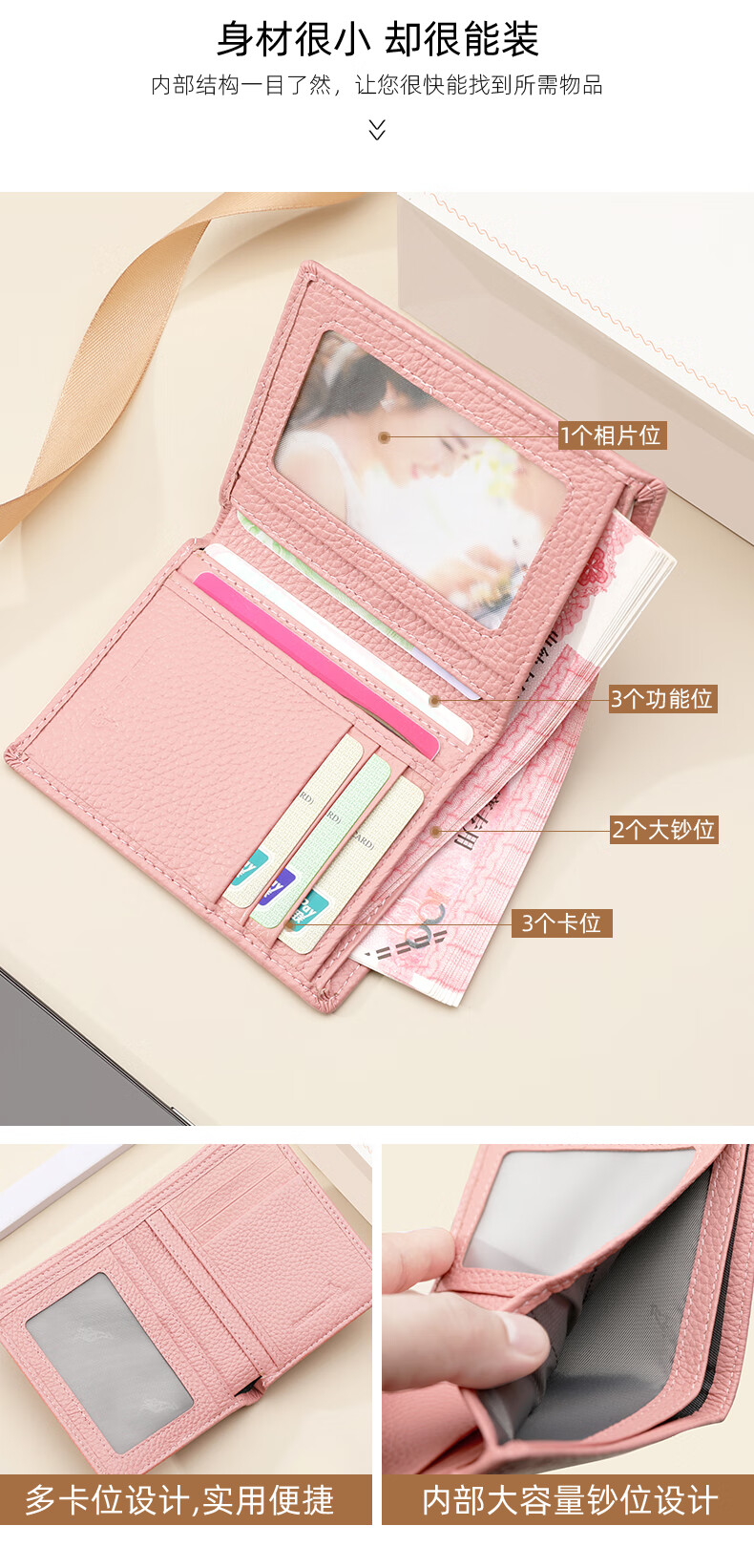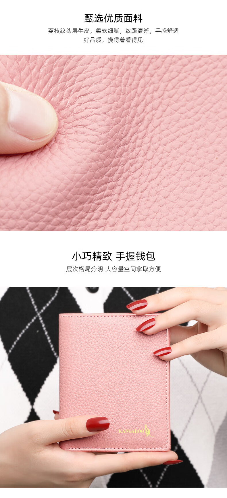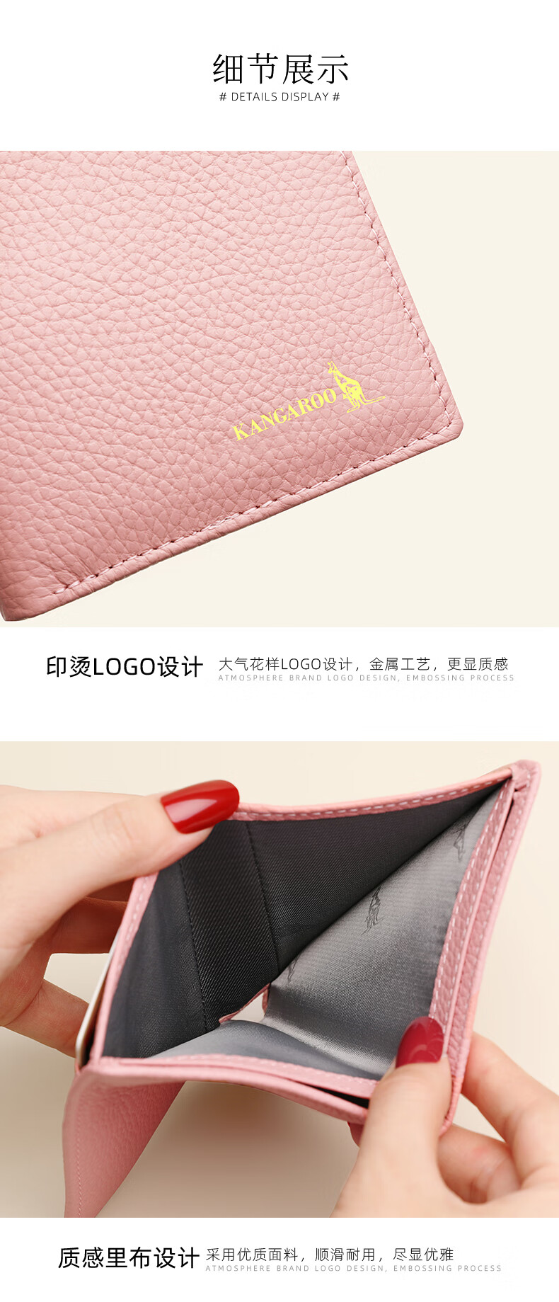Kangaroo Wallet Women's Card Holder Driver's License Compact Bank Card Case ID Card Holder Large Capacity Cowhide Multi-Card Slot Bag Pink