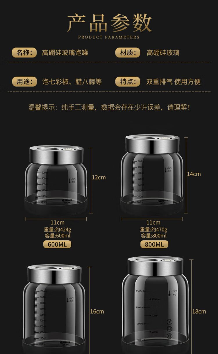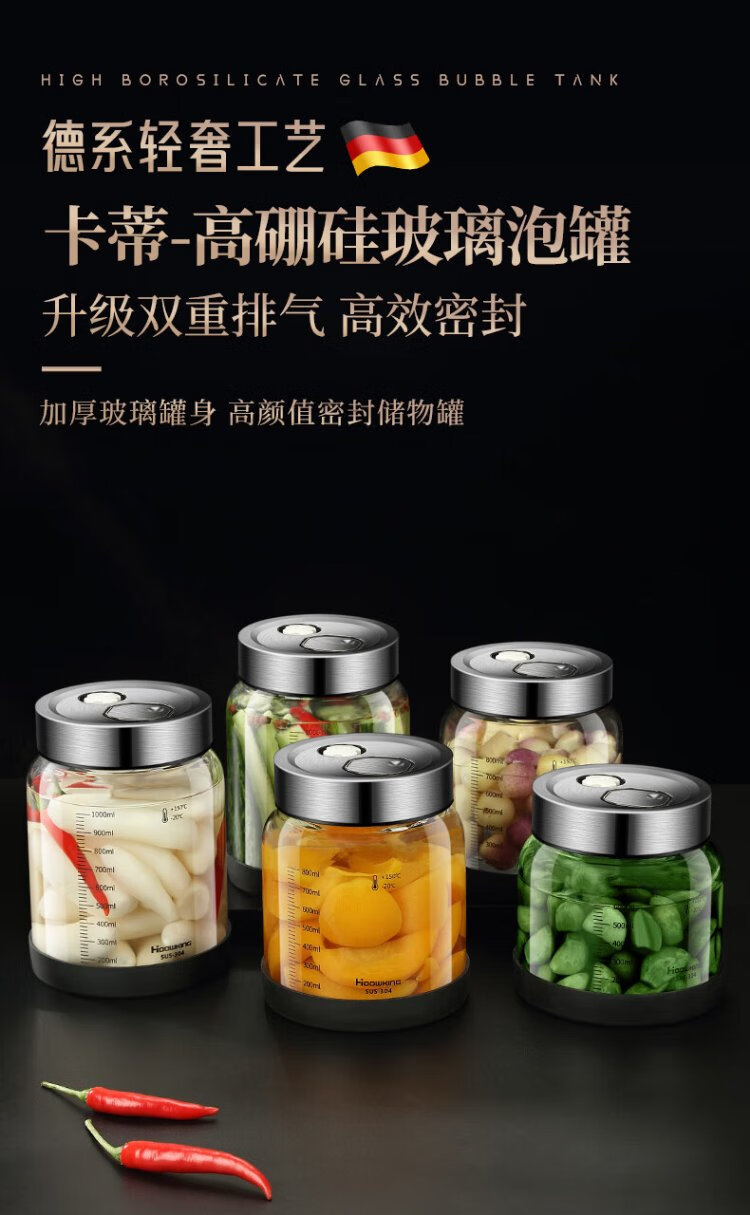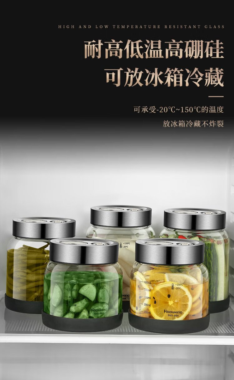 Heqing high borosilicate glass bubble jar high and low temperature resistant pickle jar sealed jar wine container storage bottle storage jar 600ML high borosilicate glass
