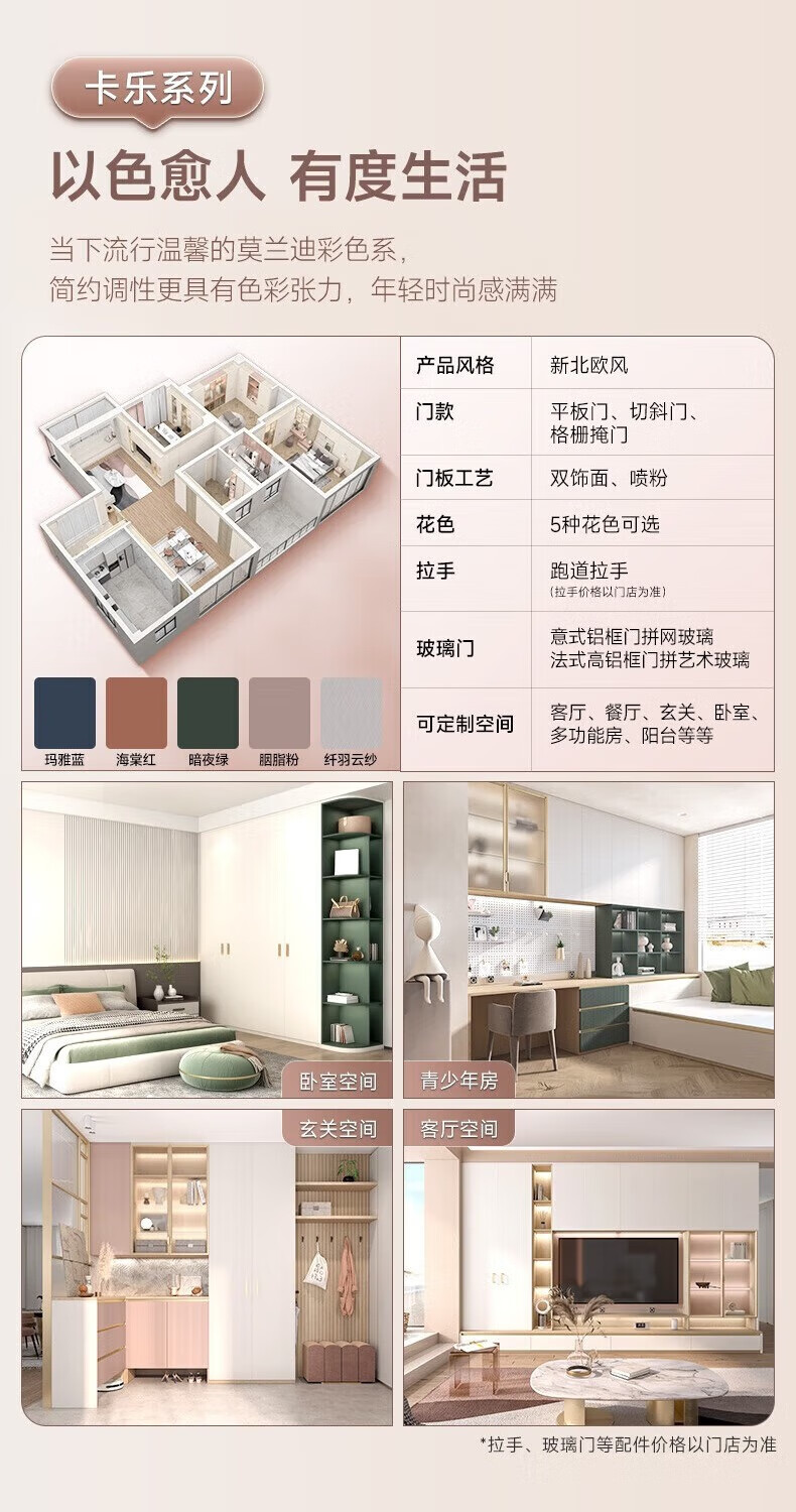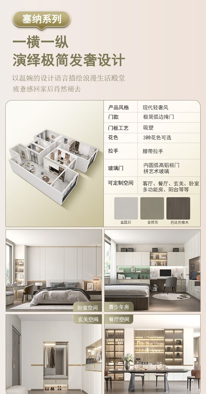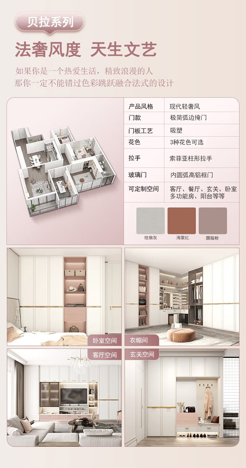 Sofia Customized Wardrobe Integrated Wardrobe Bedroom Furniture Glass Door Entrance Cabinet Sideboard Wine Cabinet (Carle Series-Double Decoration) Morandi Color Wardrobe
